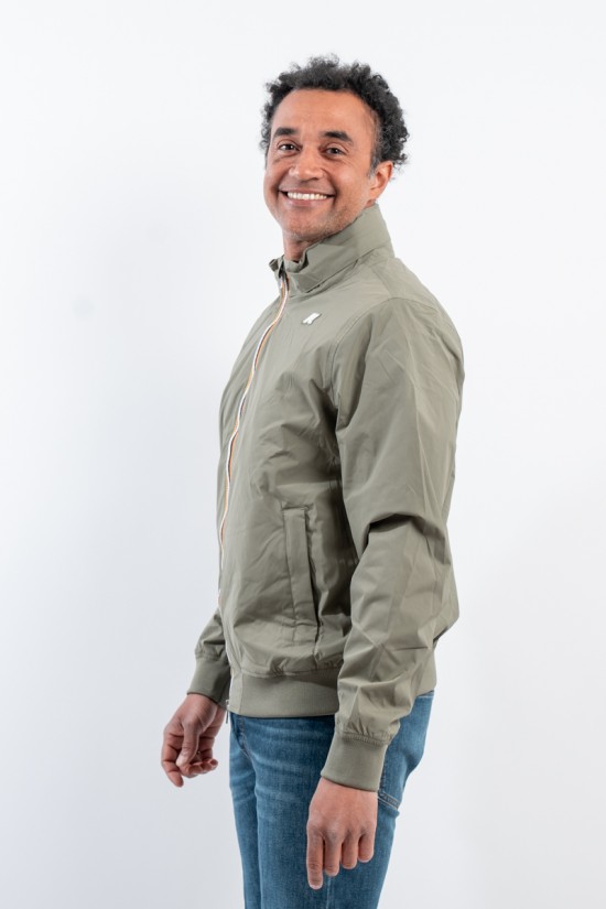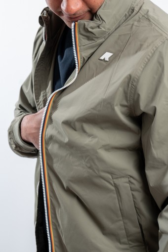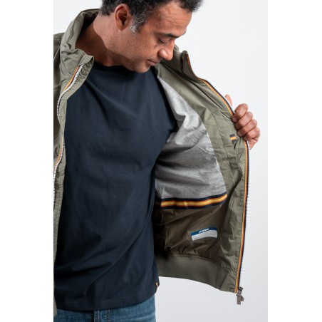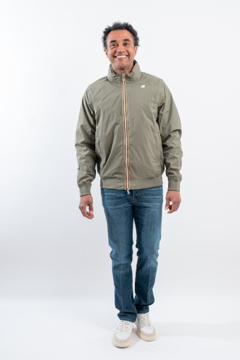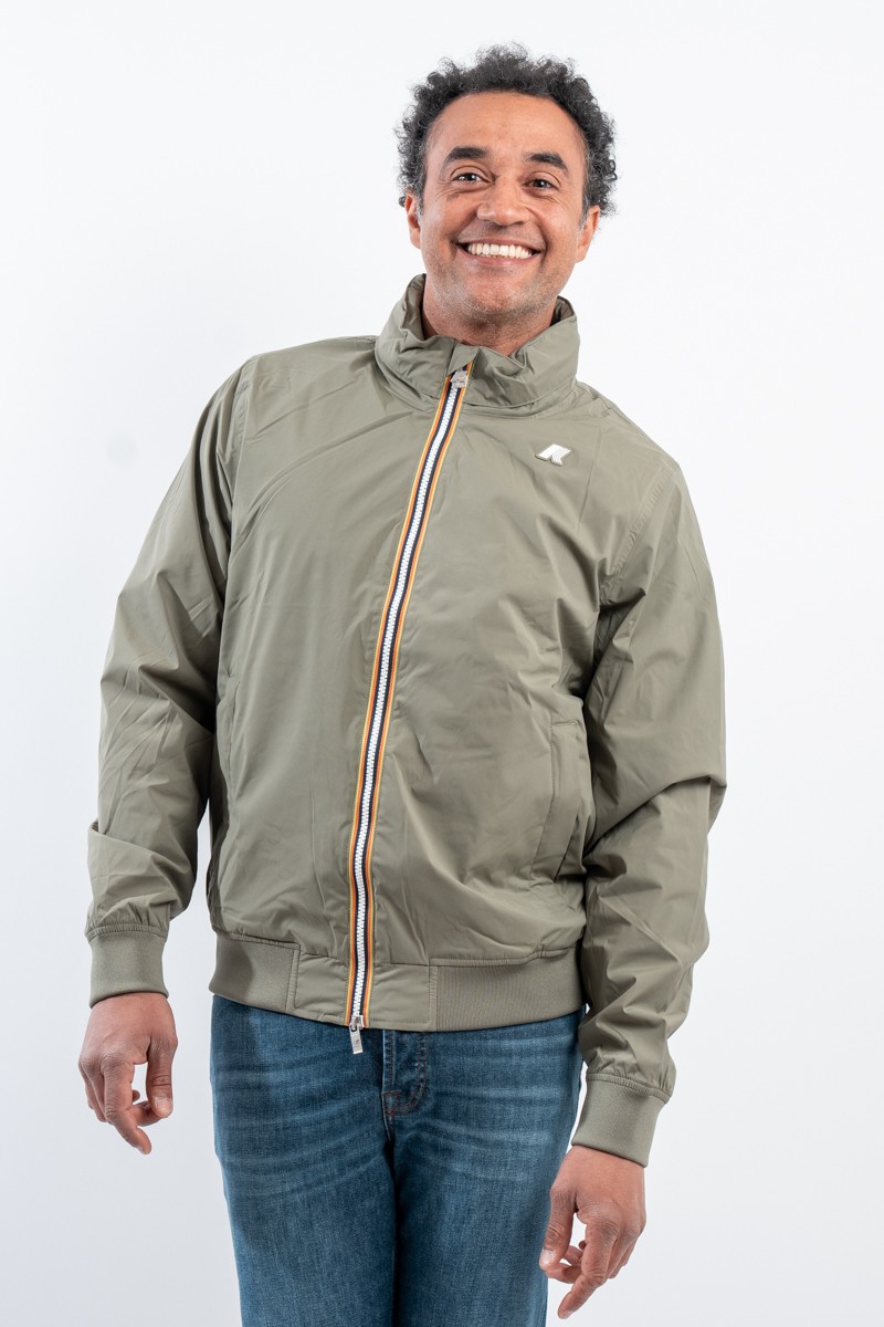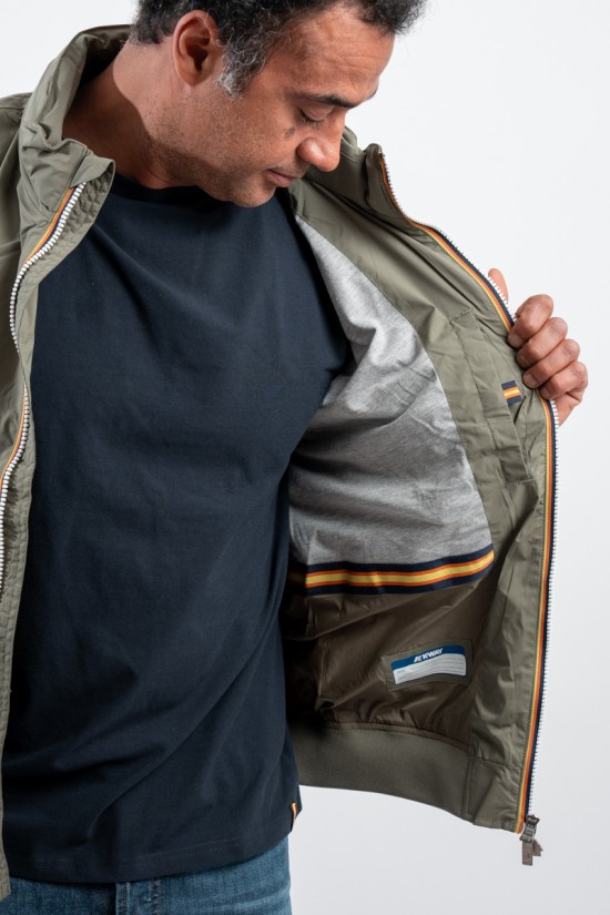 The Amaury Short Jacket combines casual, urban style with k-way technical features. Made of stretch nylon, it features a soft heather gray jersey lining on the front and back, ensuring comfort and protection. Thoughtful details include heat-taped seams and the famous multicolor tape k-way at the waist, which adds a distinctive touch. Perfect for a practical and characterful look, it is ideal for facing dynamic days in the city in style.