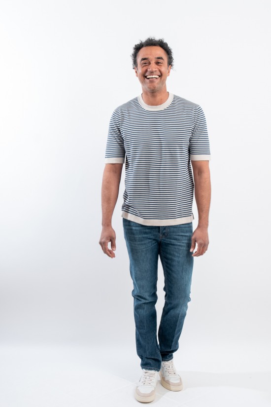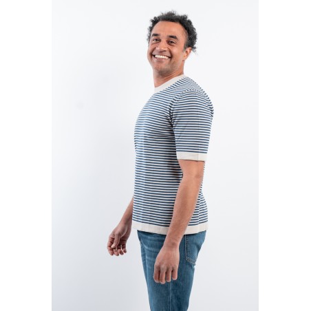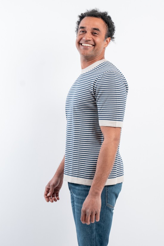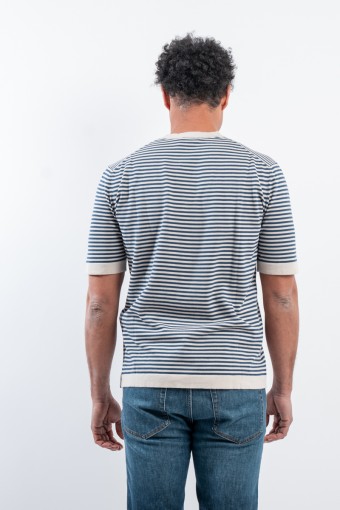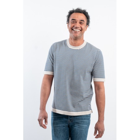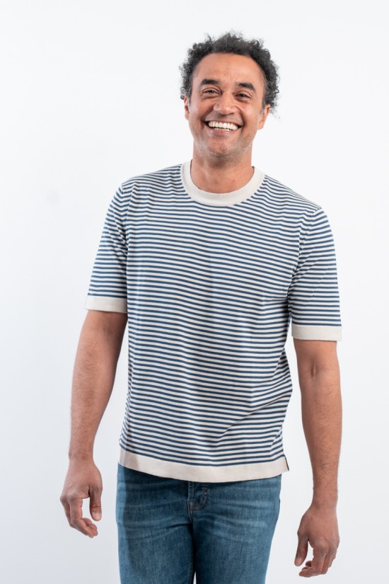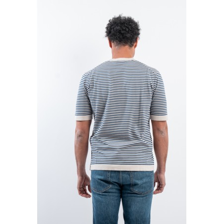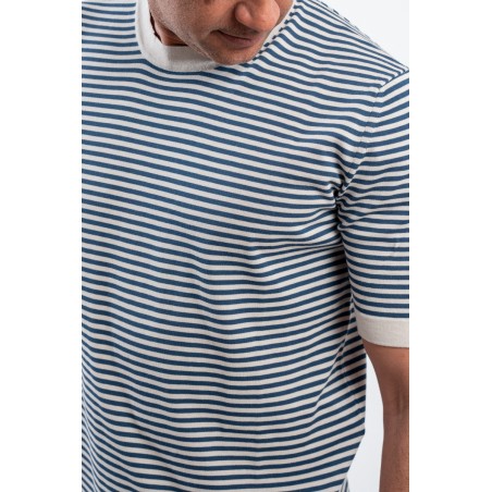 Combe is a crewneck sweater by k-way with short sleeves, characterized by classic lines and regular fit. Made of pure Egyptian cotton, it offers a soft, smooth and anti-pilling resistant hand. The timeless design stands out for its striped pattern, while details such as the tubular sleeve edge and bottom hem add a touch of care and quality. Perfect for a casual and versatile look, it combines comfort and style on any occasion.