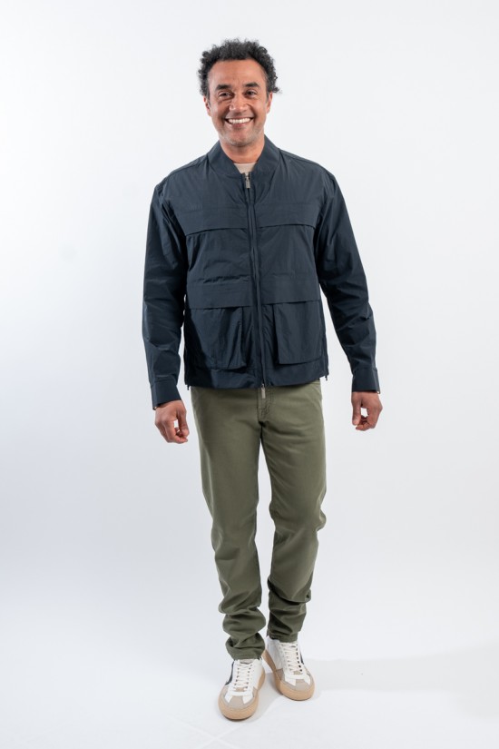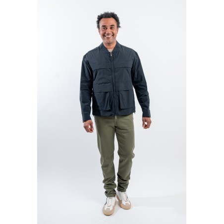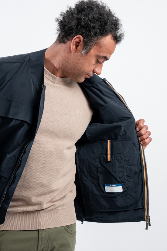 Barion is a short jacket with a casual and urban character, perfect for spring. Made of cotton with a slightly crinkled texture, it offers comfort and style. Equipped with a collar, two patch pockets and an adjustable bottom with drawstring that allows you to adapt to different weather conditions. Ventilation holes under the arms ensure breathability, making it ideal for facing changing days with practicality and style.