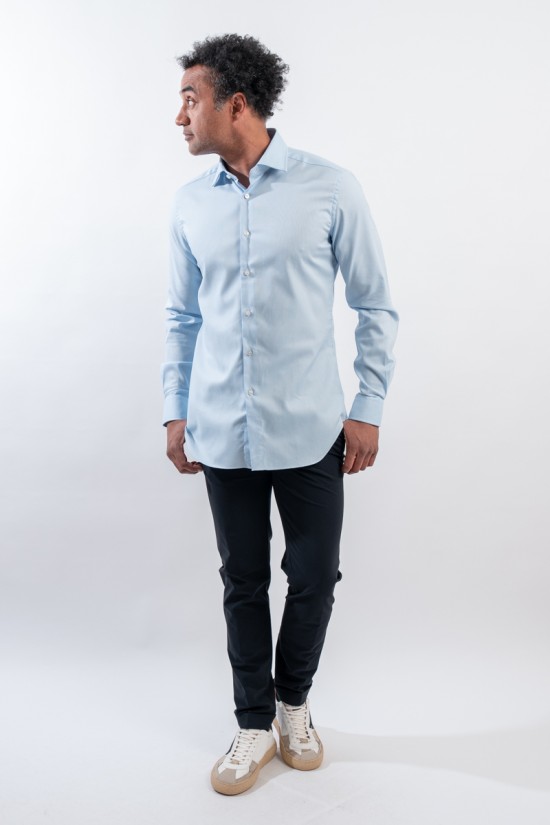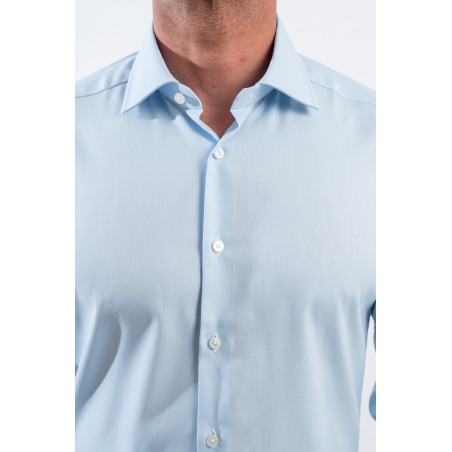 The Travel Shirt by XACUS with French collar, uses your body temperature to keep you wrinkle-free all day long. Made of double-twisted Royal Oxford fabric, it is ideal for the office and formal situations, with a bright color that will not go unnoticed. Embellished with sartorial details such as removable boning and English stitching. It represents the highest standard of quality and performance. Perfect for an impeccable look without sacrificing comfort.