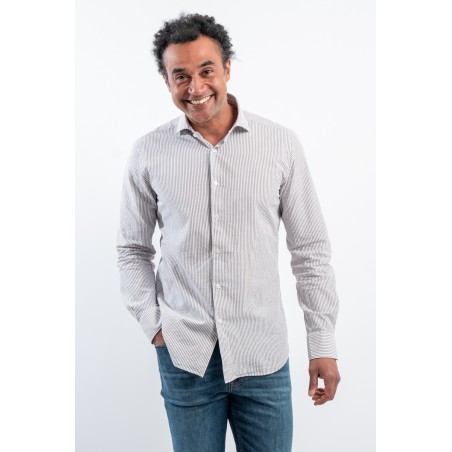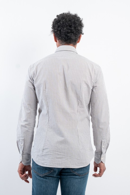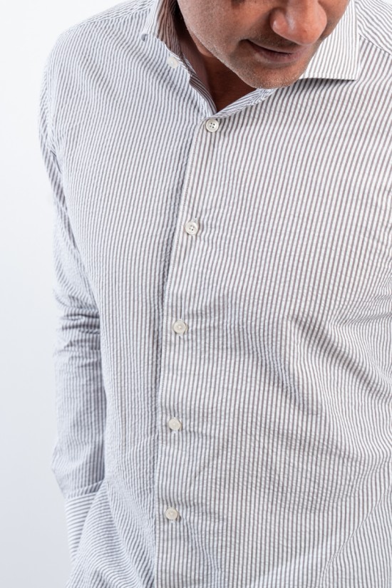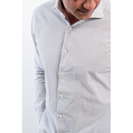 Classic shirt by XACUS, garment-washed for a sporty and casual look. Made of lightweight and breathable cotton seersucker, it is the perfect summer garment for those who love fabrics with personality and authentic texture. The button-down collar and soft, unstructured round cuffs give it a relaxed, versatile look. After each wash and iron, it retains a naturally lived-in charm, perfect for an everyday style without sacrificing quality. The tailor fit wash, updated in volumes, offers a slim fit in smaller sizes and more comfortable in larger sizes, ensuring comfort and style on every occasion.