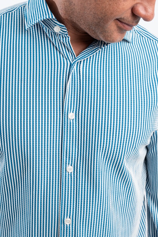 The Active Shirt by XACUS combines comfort and functionality in a stylish design. Made of seersucker fabric that guarantees breathability and maximum comfort throughout the day. Perfect for an active lifestyle, it offers practicality without compromising the elegance of a formal shirt. Ideal for those looking for versatility and refinement.