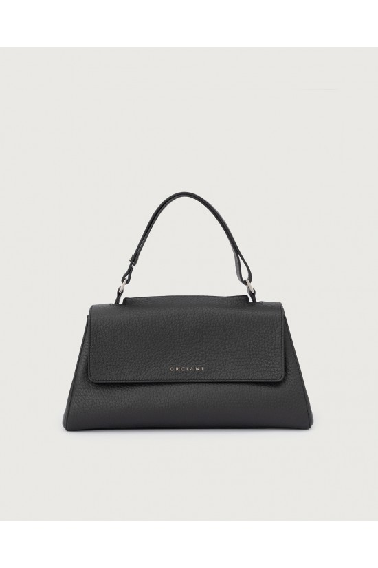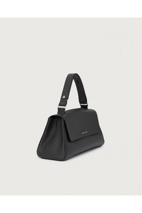 The Sveva Longuette Bag in Soft, a versatile and trendy leather, is a timeless icon that enriches the ORCIANI collections. Equipped with three internal pockets, one of which is zipped, it guarantees maximum practicality and functionality. The flap closure with magnetic button integrates seamlessly into the sleek design, while the concealed opening on the top of the flap adds a touch of modernity and innovation. A refined accessory, ideal for those looking for style and practicality in a single piece.