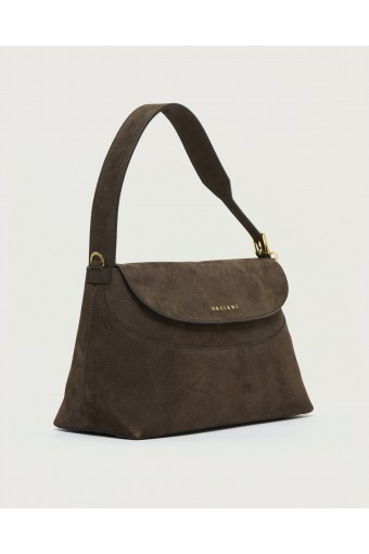 With sinuous and soft lines, the new Nana bag by ORCIANI is presented. Made of very soft nubuck leather made in Italy. Practical and versatile to carry on the shoulder or crossbody. Main closure with flap and snap buttons, interior lined completely in matching suede with large pocket closed by zip. Perfect to wear in everyday life, but also to complete some outfits for special evenings.
