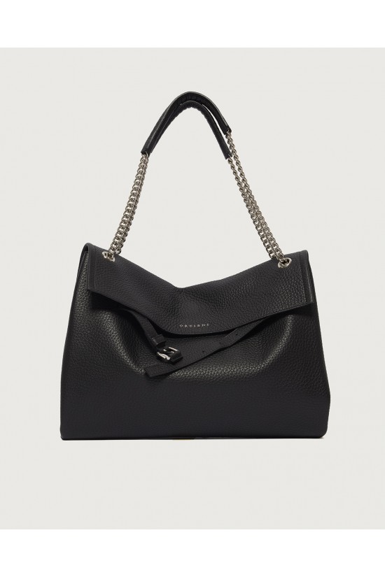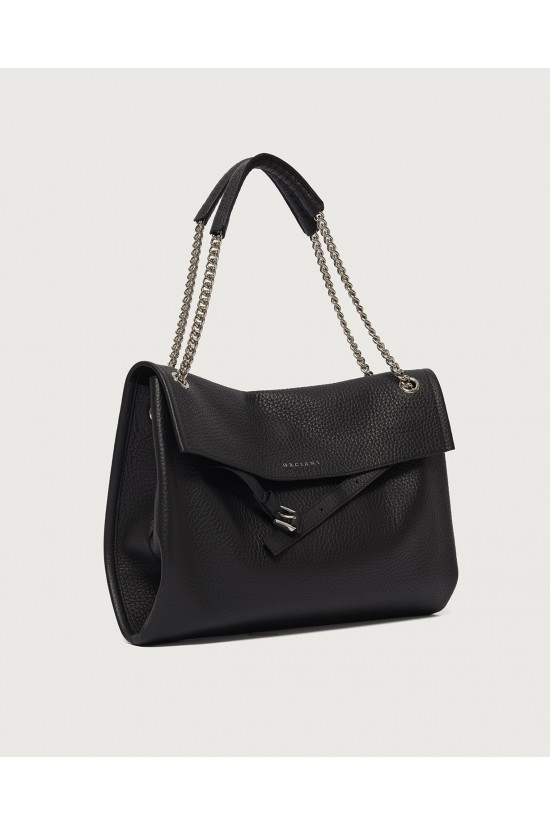 Venus is the ORCIANI bag with soft shapes and structured design, a symbol of continuity between past and future. The unfastened belt detail, elongated shape and chain shoulder strap add modern and contemporary touches. Made of soft hammered leather, it combines elegance and practicality, representing a perfect combination of tradition and innovation. A versatile accessory that enriches any look with style and functionality, ideal for those looking for a timeless design with contemporary details.