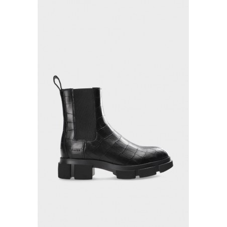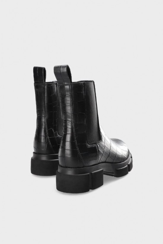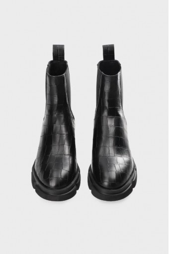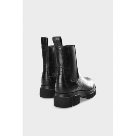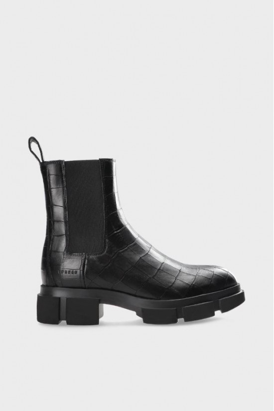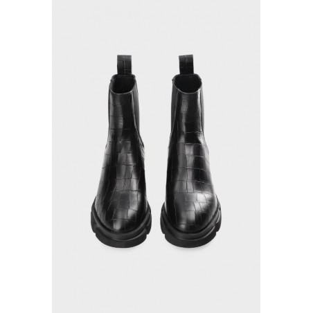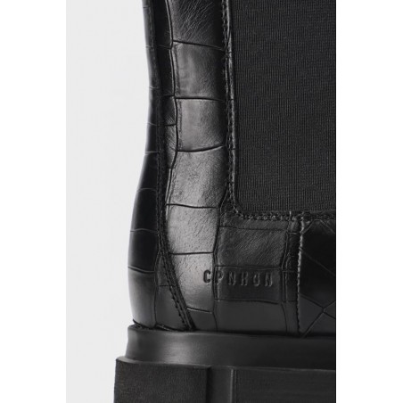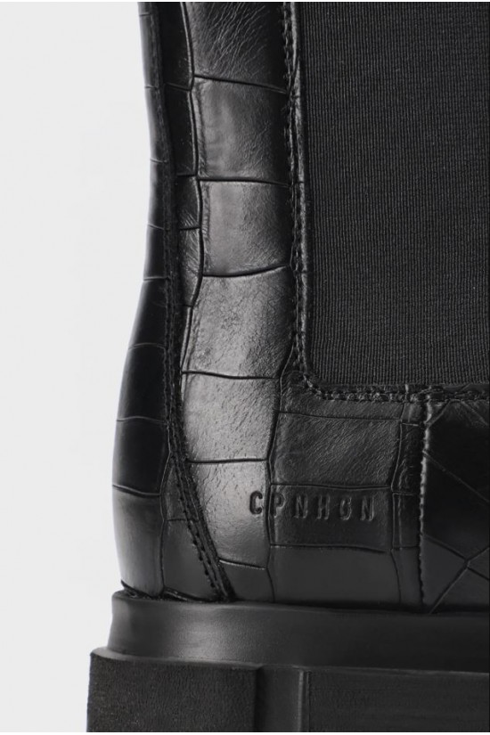 CPH570 ankle-high ankle boot by COPENHAGEN is made of soft crocodile-effect leather. The clean shape combines with a thick sole with a distinctive profile, creating a bold look and a comfortable stride. It features elastic inserts with refined details and a practical loop. Embellished on the side with a printed logo that gives a discreet touch. Ideal for those who love clean lines without sacrificing character, this boot represents a mix of freshness and Scandinavian casual style. Designed in Copenhagen and produced in Europe, with leather sourced from family-run Italian factories.