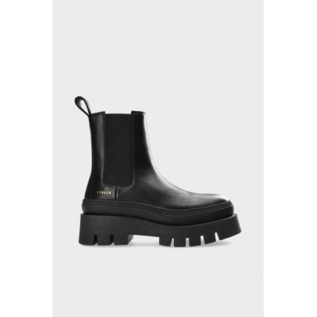 Ankle boot by COPENHAGEN is made of soft leather and stands out for its elegant and versatile design. Stretch knit inserts provide comfort and adaptability, while the clean, modern silhouette is enhanced by a high sole with a distinctive profile and a solid, stable block heel. The slightly rounded toe adds a touch of sophistication, while the gold logo print on the upper adds a classy detail. Designed in COPENHAGEN and produced in Europe, it uses high quality leathers from selected companies in Italy, ensuring attention to detail and attention to detail. Not only a trendy must-have, but above all a product made with passion and attention to quality.