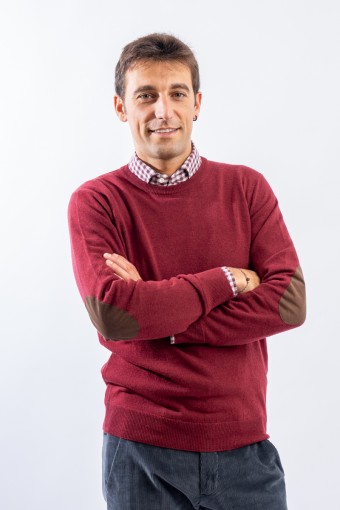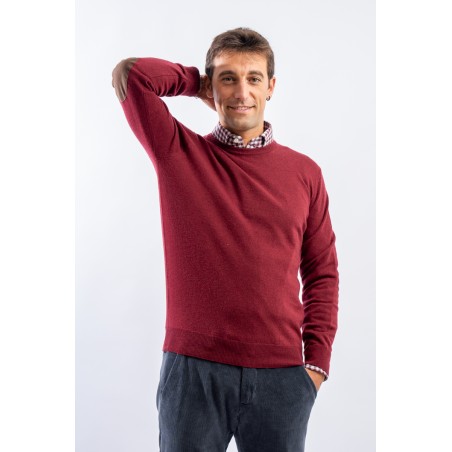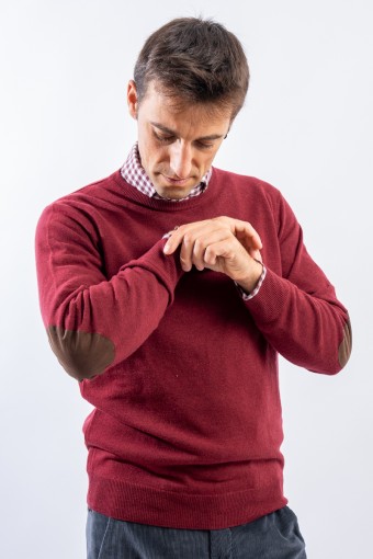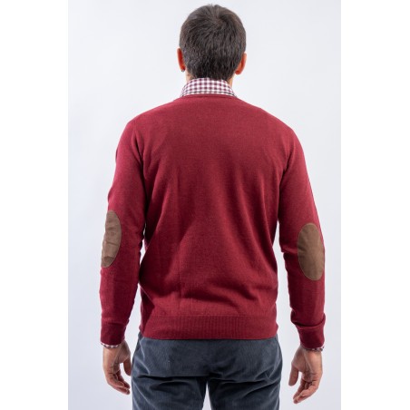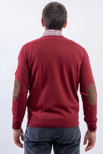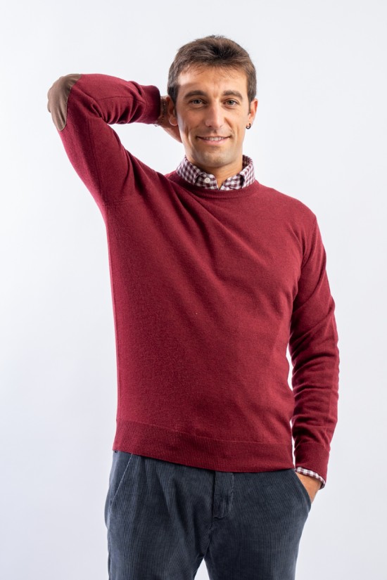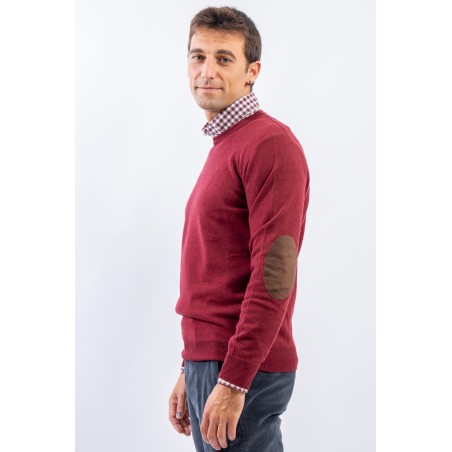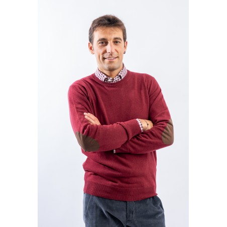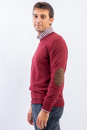 Crewneck sweater with stockinette stitch embellished with an alcantara patch. Regular fit. Made in Italy.