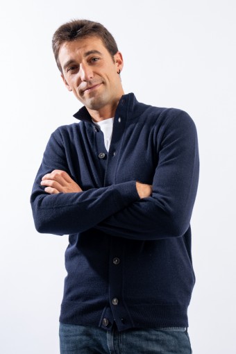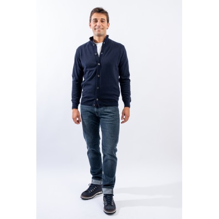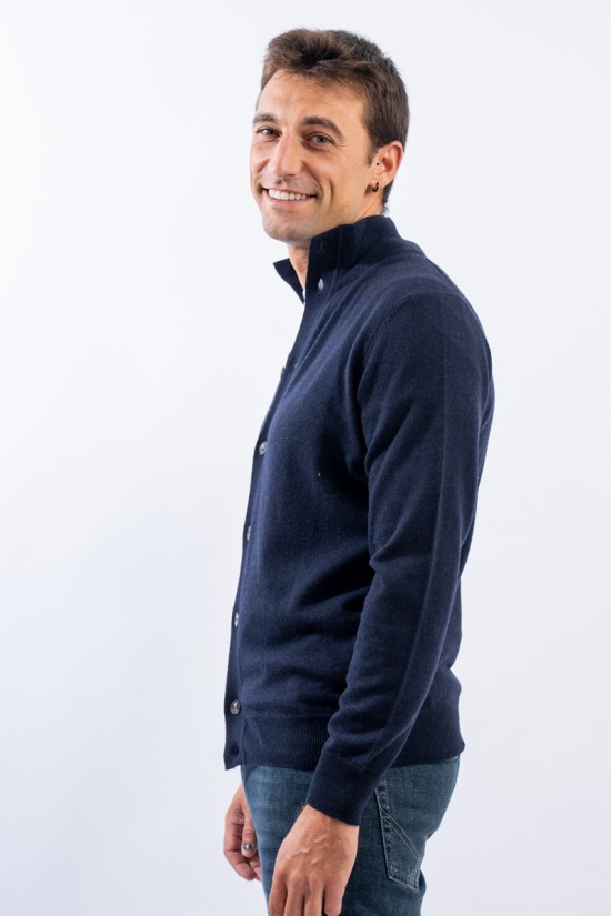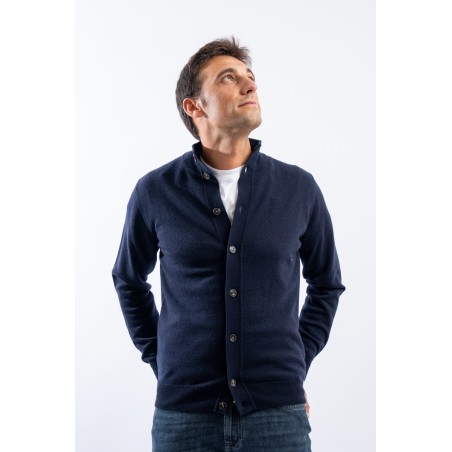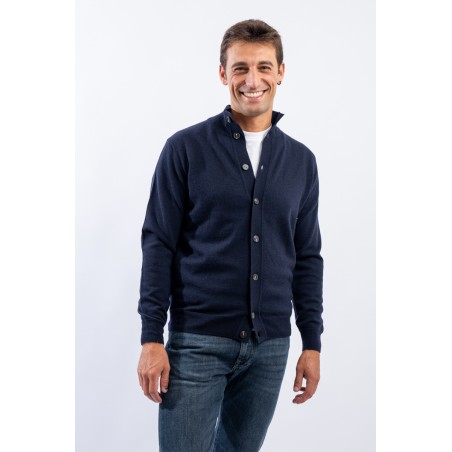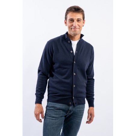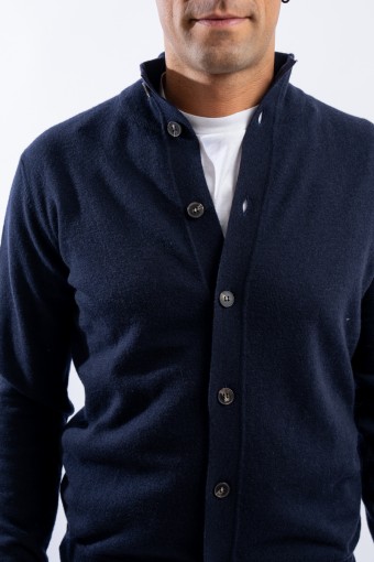 High-neck cardigan by KANGRA. Made of 100% wool with stockinette stitch. Central button closure. Enriched by the ribbed knit on the bottom, collar and cuffs. Made in Italy.
