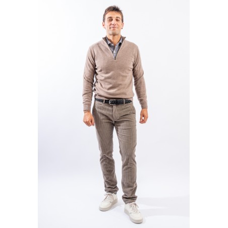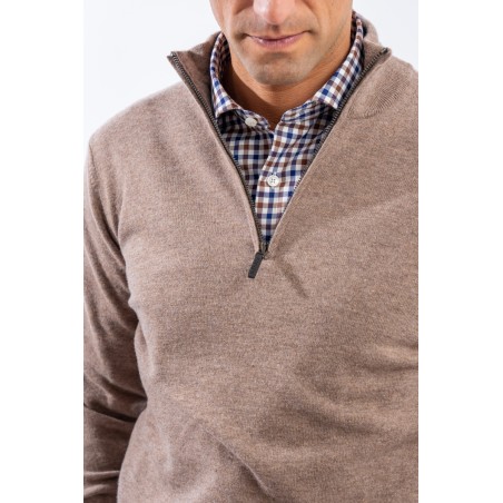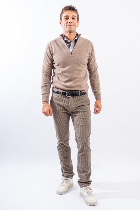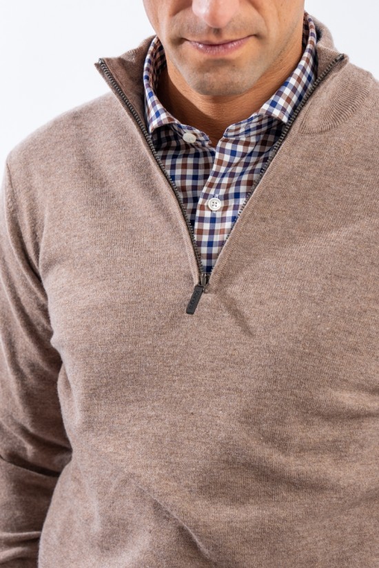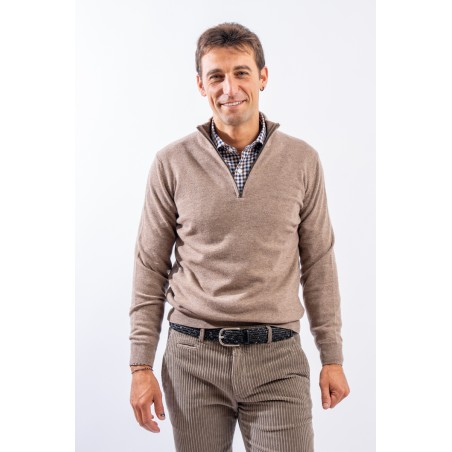 Stand-up neck sweater with half-zip closure. Made of 100% wool, it is warm, light and soft to the touch. Enriched with a narrow ribbed knit on the bottom, collar and cuffs. Comfortable and practical, it is ideal for everyday use. Made in Italy.