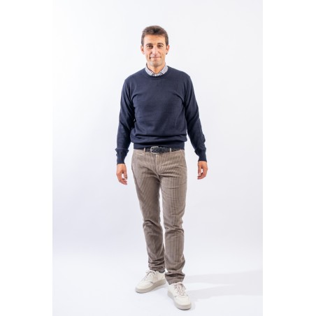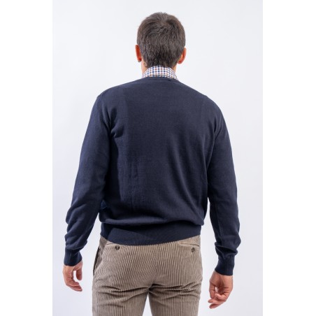 Crewneck sweater made on 12 gauge in wool and cotton blend. Ribbed finish on the bottom, cuffs and neckline. Essential, warm and light line, the KANGRA pullover is perfect to complete any outfit.