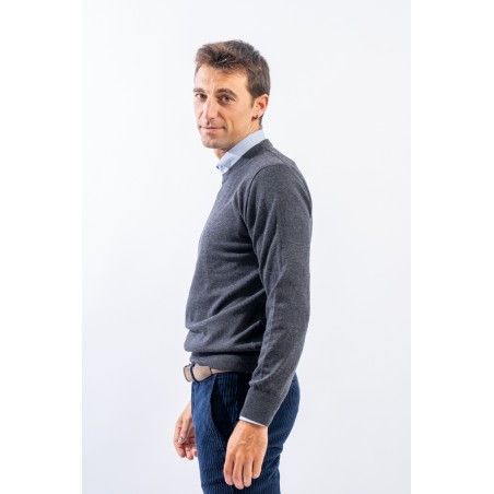 Crewneck sweater made on 12 gauge in wool and cotton blend. Ribbed finish on the bottom, cuffs and neckline. Essential, warm and light line, the KANGRA pullover is perfect to complete any outfit.