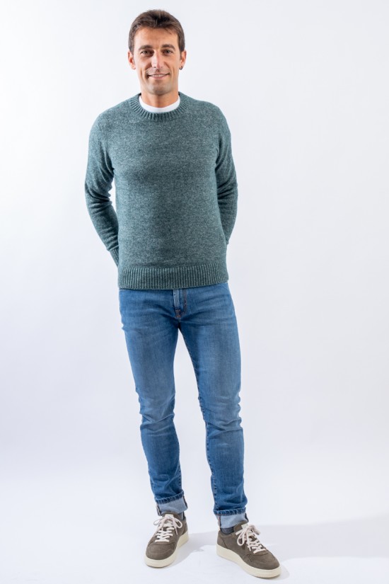 Stockinette melange crewneck sweater made KANGRA a yarn of alpaca, wool and cotton, warm and soft to the touch. Regular fit. made in Italy.