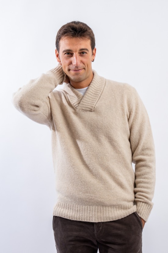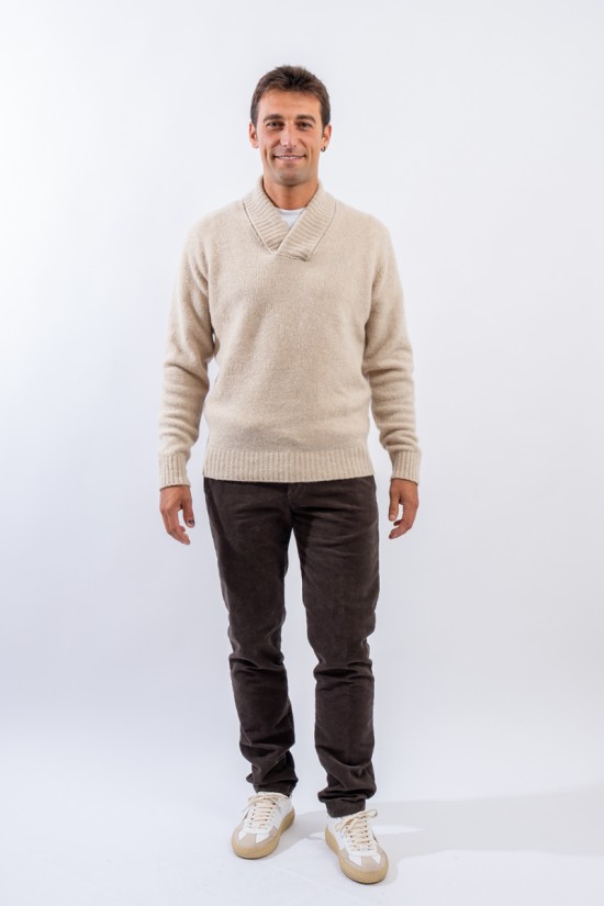 The sweater by KANGRA is soft and comfortable, made of a wool and cashmere blend. Characterized by a dropped stockinette stitch. Enriched by the V-neckline, cuffs and wide ribbed hem. Perfect to wear on cold autumn and winter days. Made in Italy.