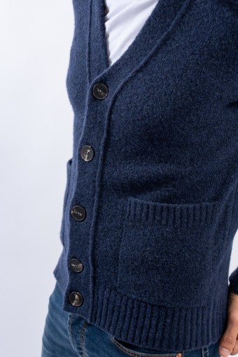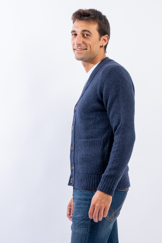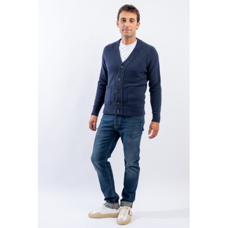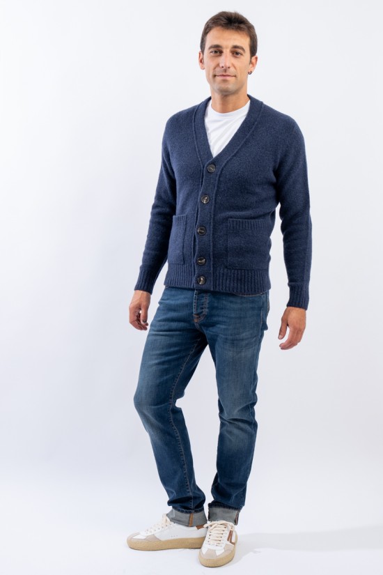 The cardigan by KANGRA, versatile and refined. Made of wool and cashmere blend to enhance its softness. Central closure with buttons and profile to enhance the fit, double patch pockets on the front. Ideal to be worn over a shirt or t-shirt. made in Italy.