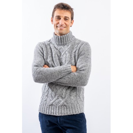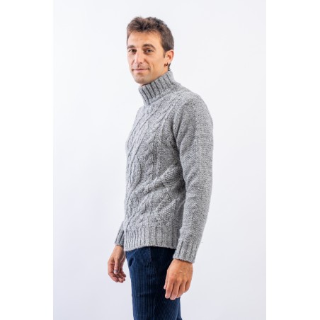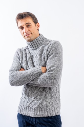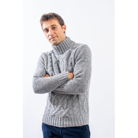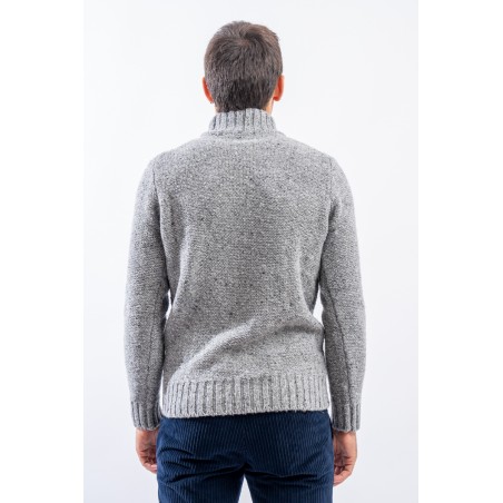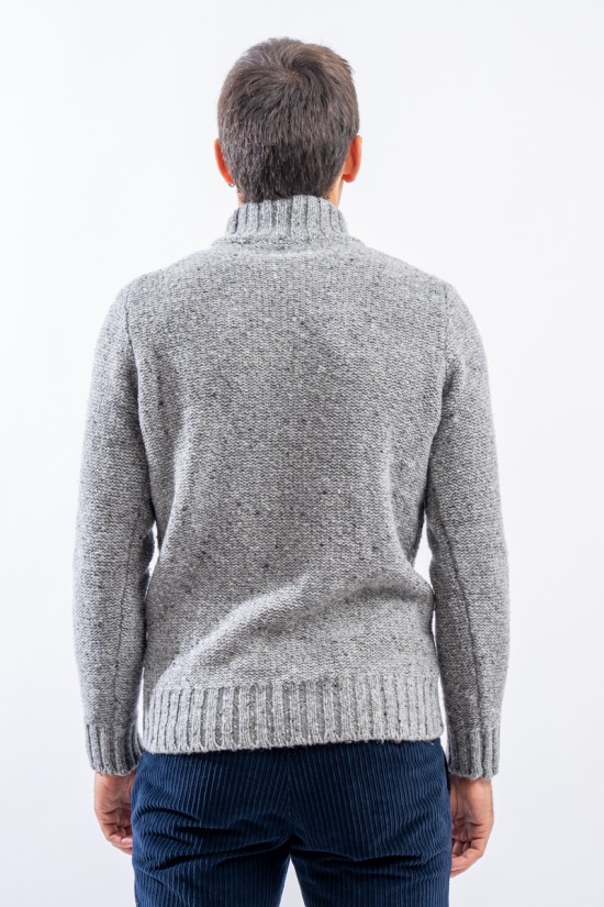 Sweater made on 3 gauge with multiple threads. Wool blend yarn with buttoned pattern embellished with Norwegian workmanship. Soft has a regular fit. The stand-up collar, cuffs and hem are ribbed. Soft and warm, it is perfect to complete any look in the colder seasons.