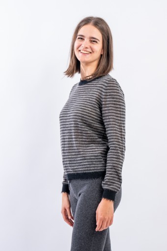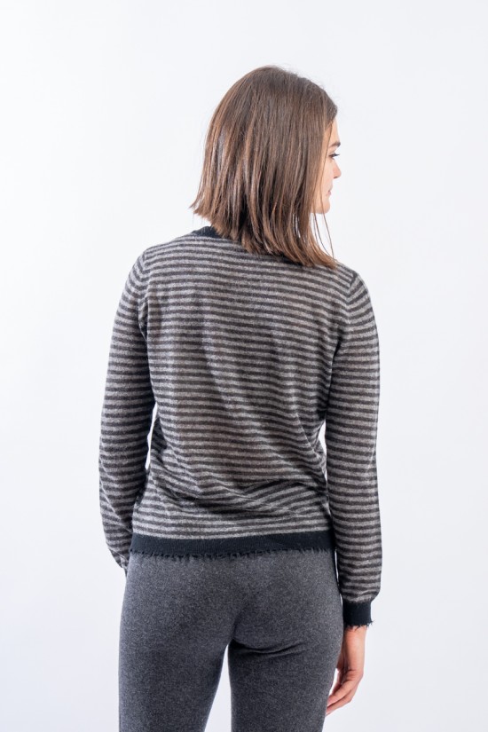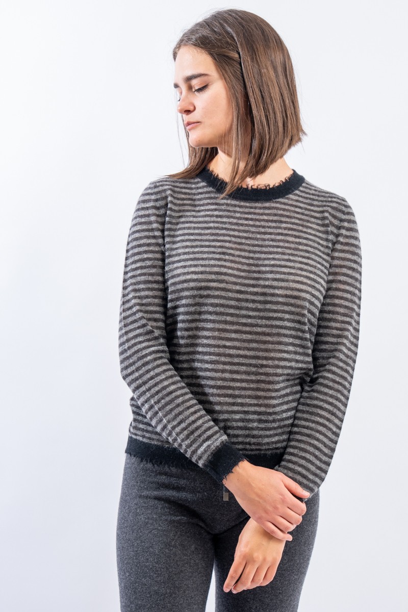 KANGRA STRIPED CREWNECK WITH FRAYED TRIM 2920 01