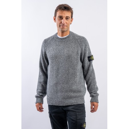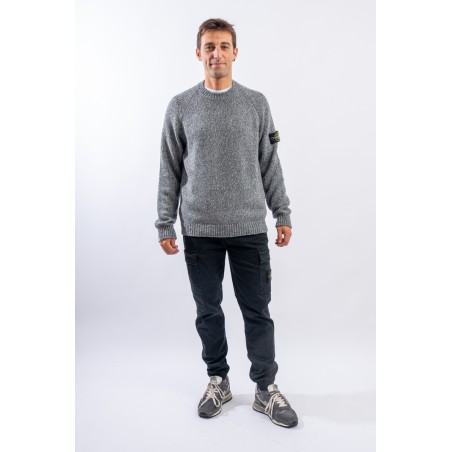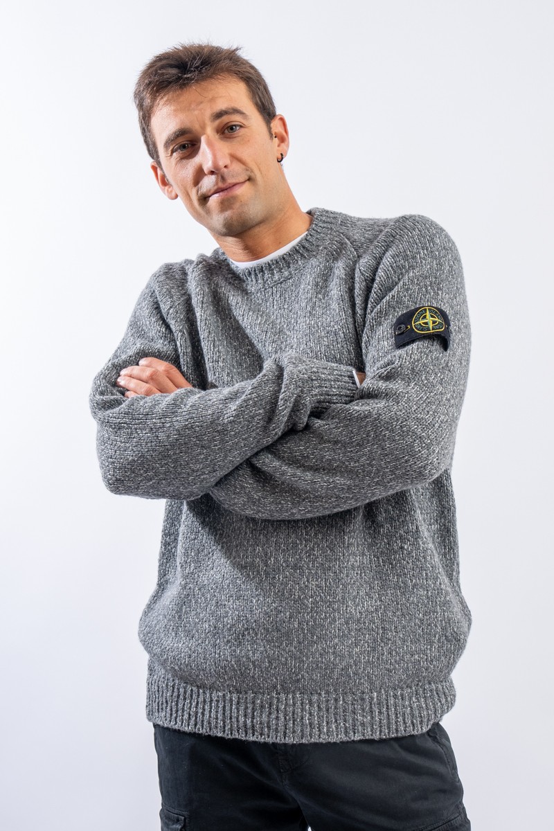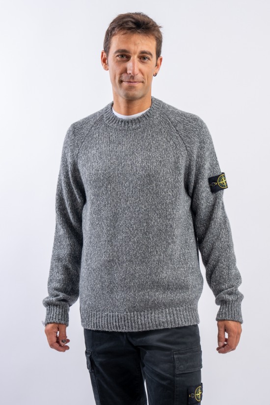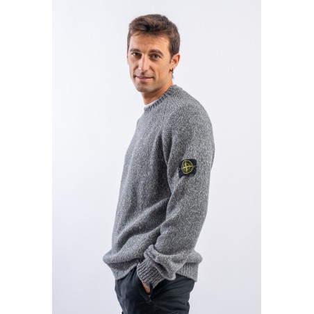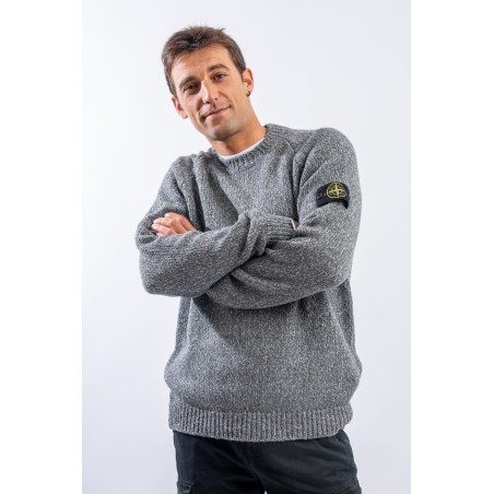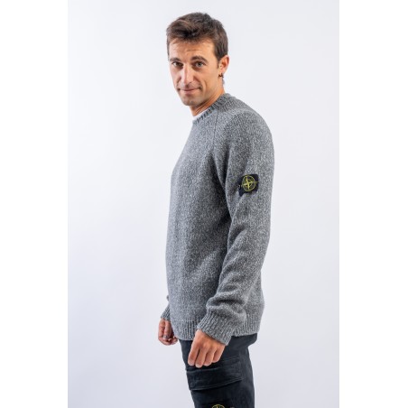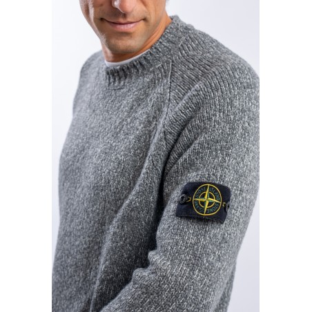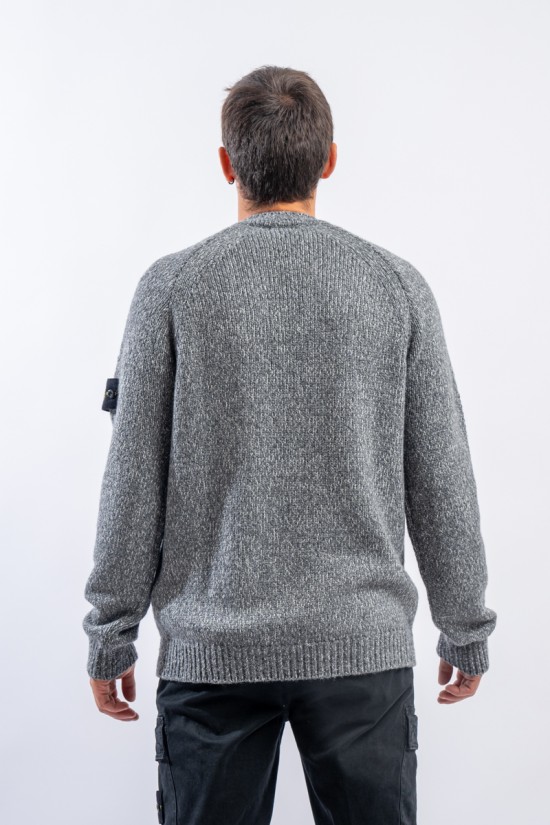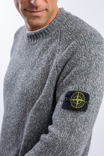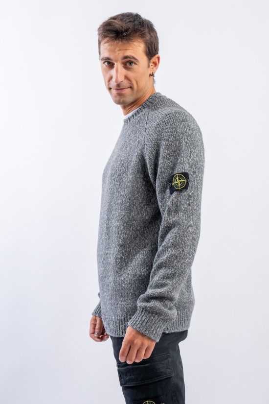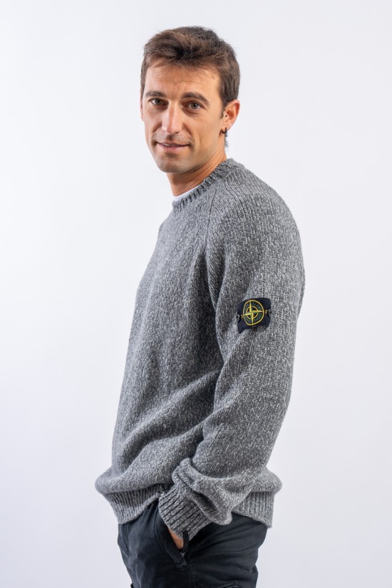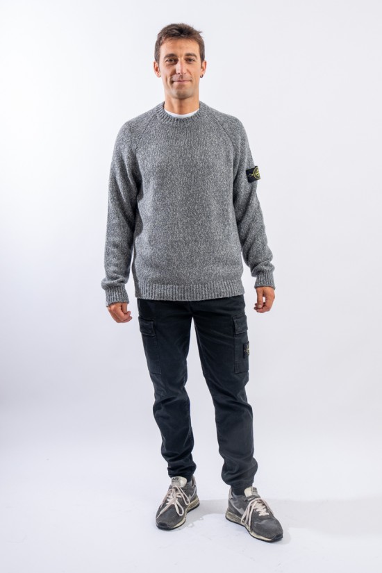 Original crewneck sweater in soft mouliné wool. Sleeves with chestnut edges and bottom. Fineness 3.