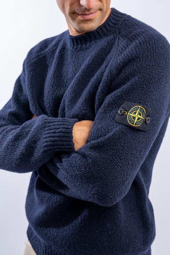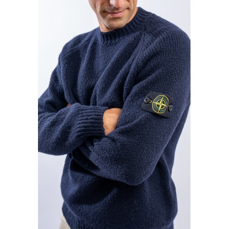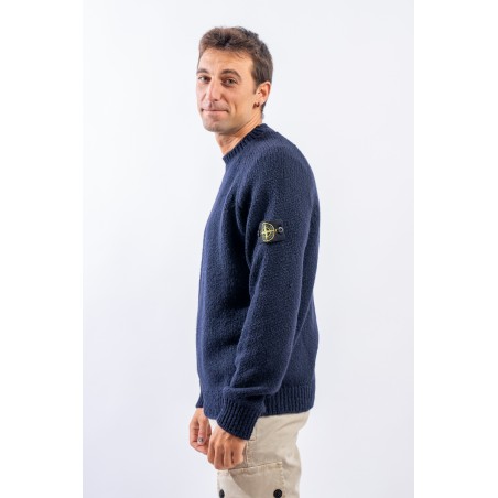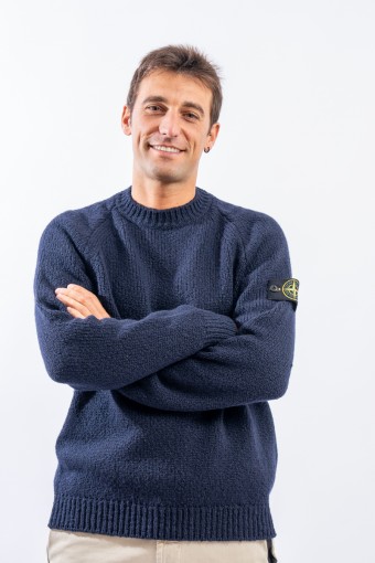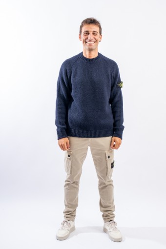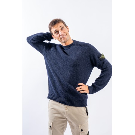 Original crewneck sweater in soft mouliné wool. Sleeves with chestnut edges and bottom. Fineness 3.