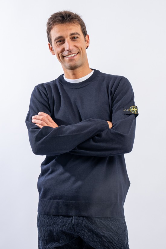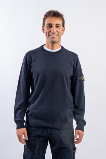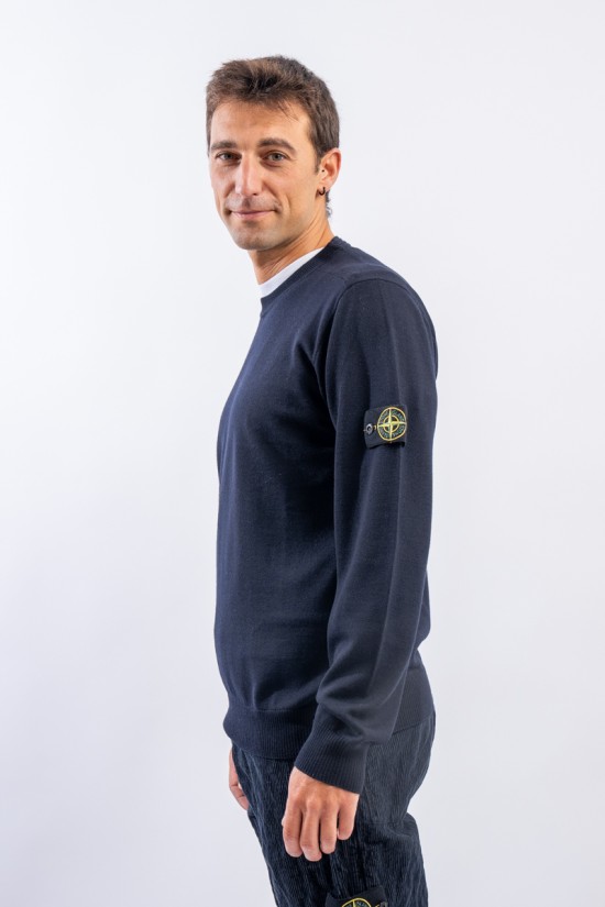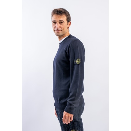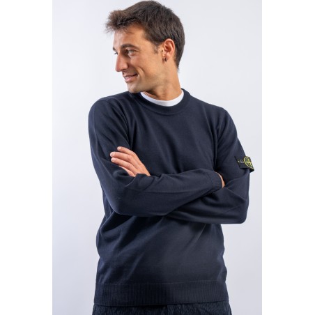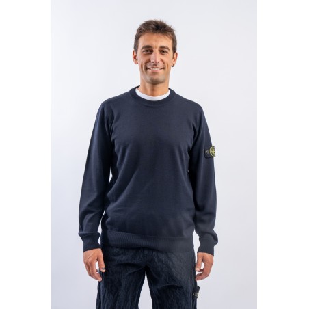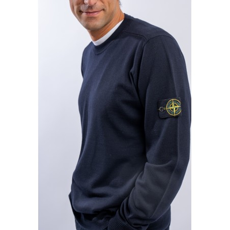 Crewneck sweater in stockinette wool interprets a classic style for a timeless must-have garment for every season. Neckline, cuffs and hem are finished with ribs. Logo badge STONE ISLAND on the left sleeve that completes the garment.
