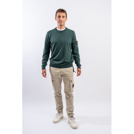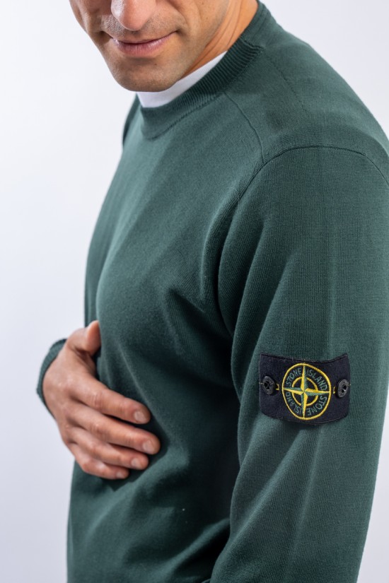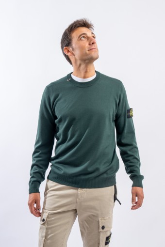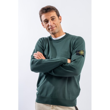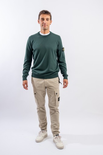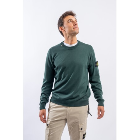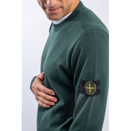 Crewneck sweater in stockinette wool interprets a classic style for a timeless must-have garment for every season. Neckline, cuffs and hem are finished with ribs. Logo badge STONE ISLAND on the left sleeve that completes the garment.