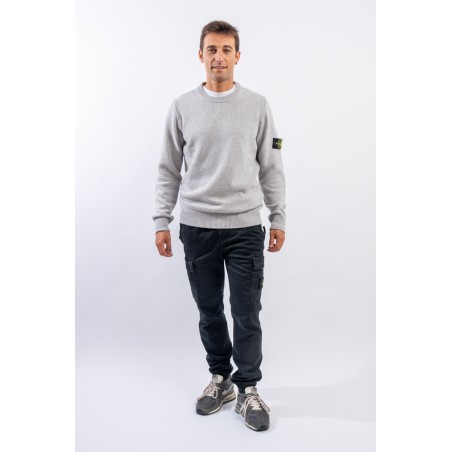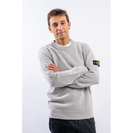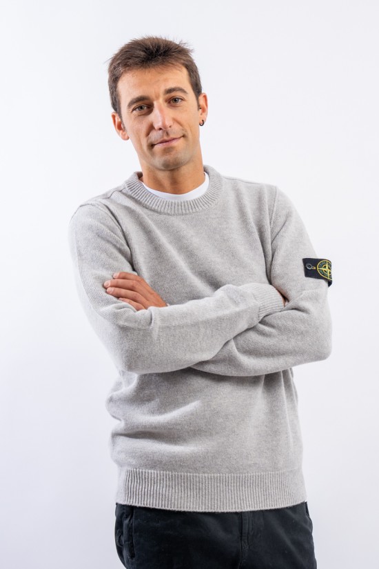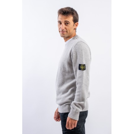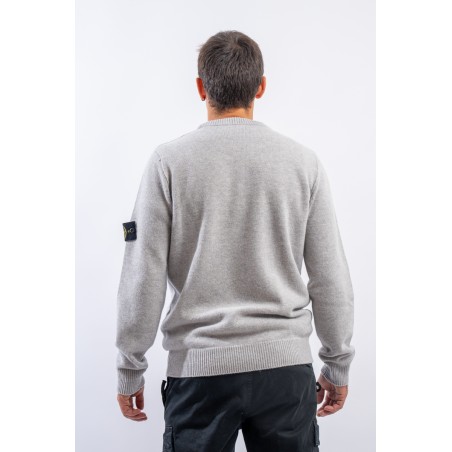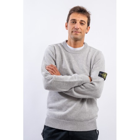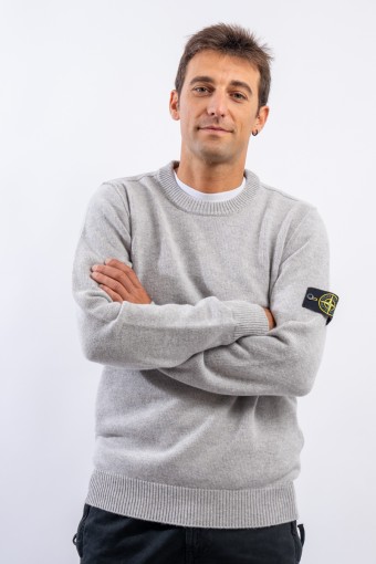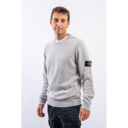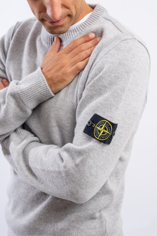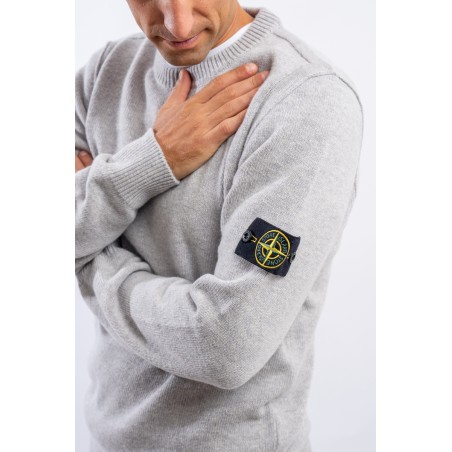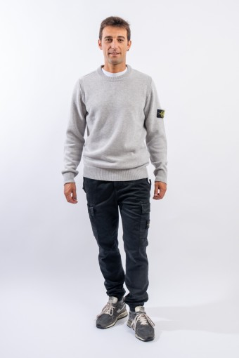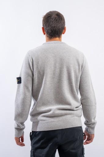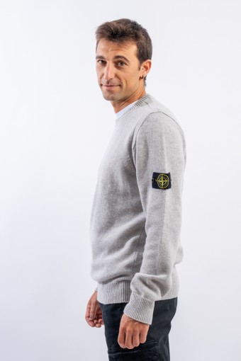 Iconic lambswool crewneck sweater with intarsia on the armholes, ribbed collar and edges. Gauge 7 with the inevitable badge applied.