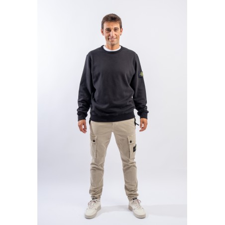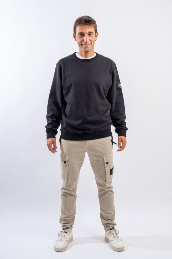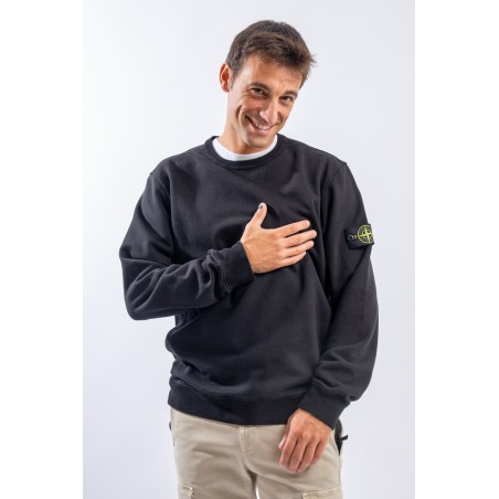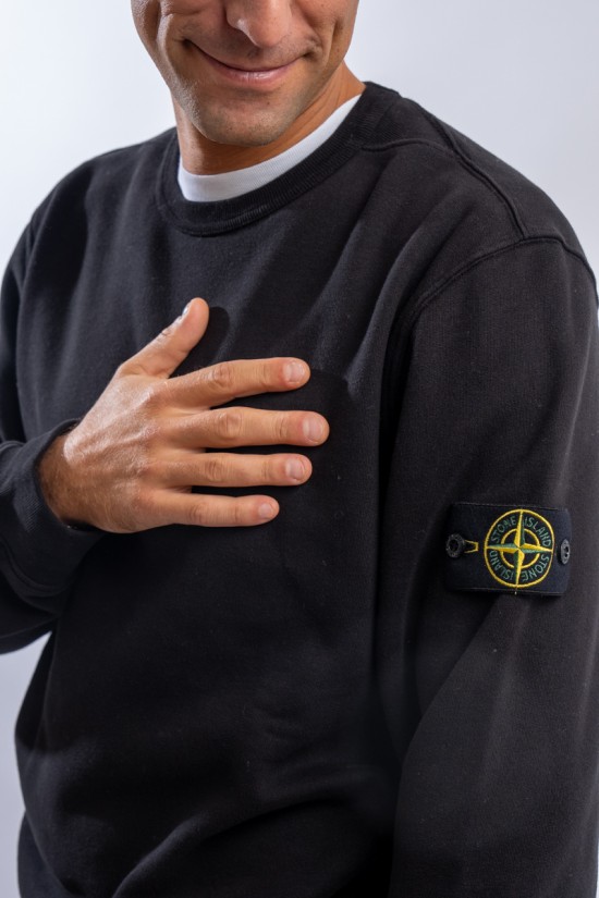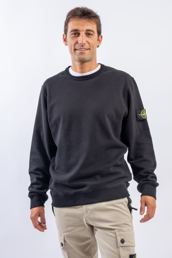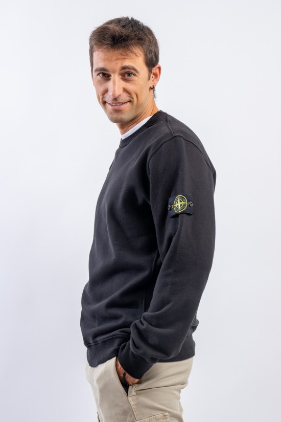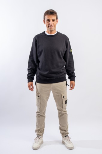 Iconic crewneck sweatshirt in organic cotton reinterpreted with updated fit standards. Pleasant to the touch, it is embellished with brushed inserts. The particular dye makes the colors warm and flattering. Inevitable badge on the left sleeve.