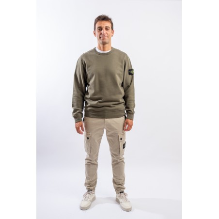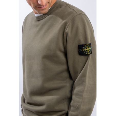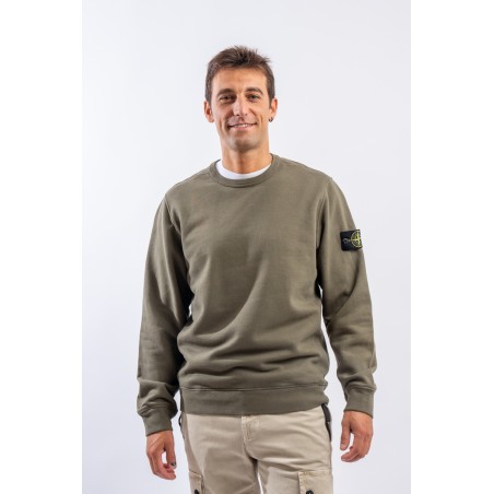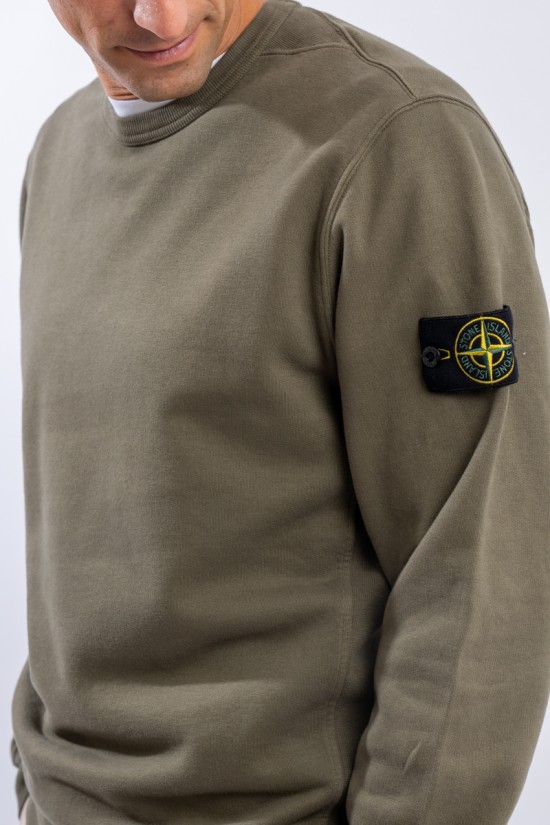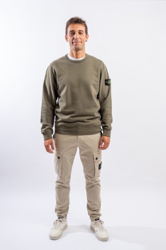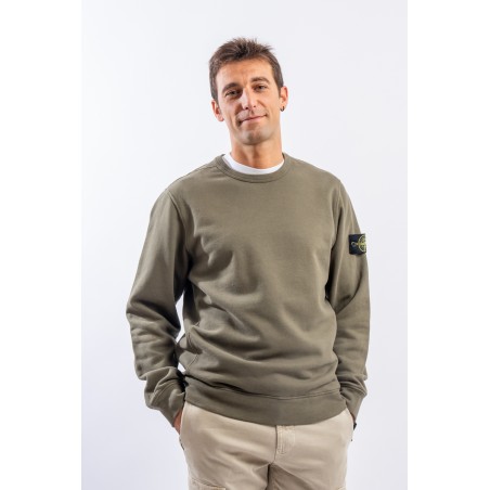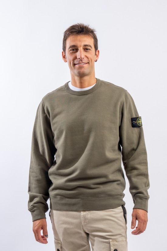 Iconic crewneck sweatshirt in organic cotton reinterpreted with updated fit standards. Pleasant to the touch, it is embellished with brushed inserts. The particular dye makes the colors warm and flattering. Inevitable badge on the left sleeve.