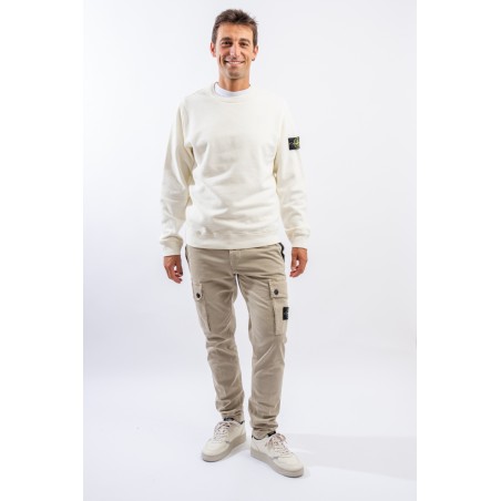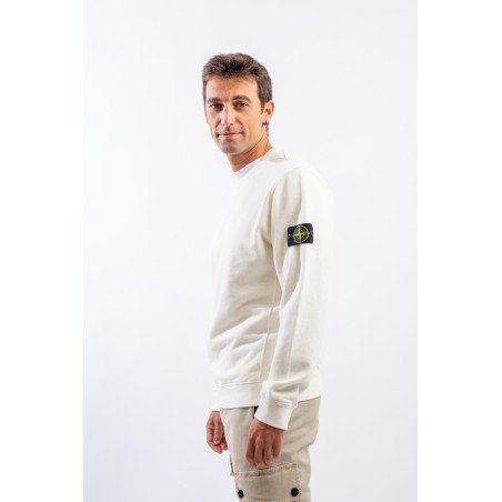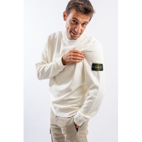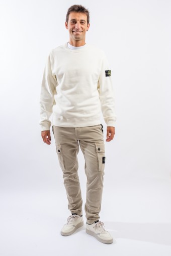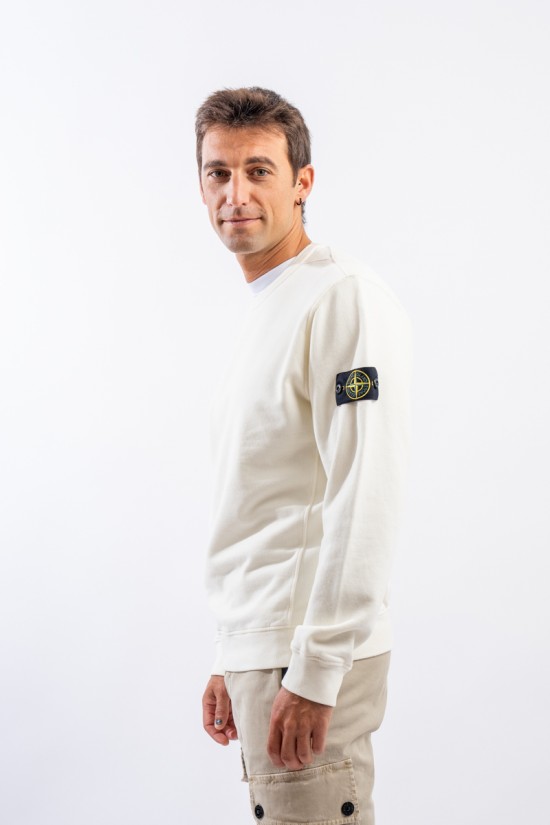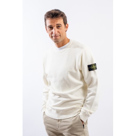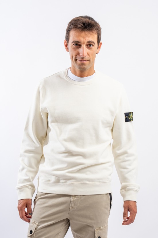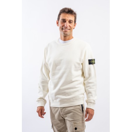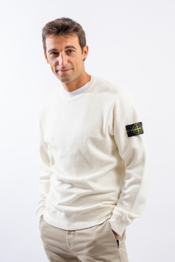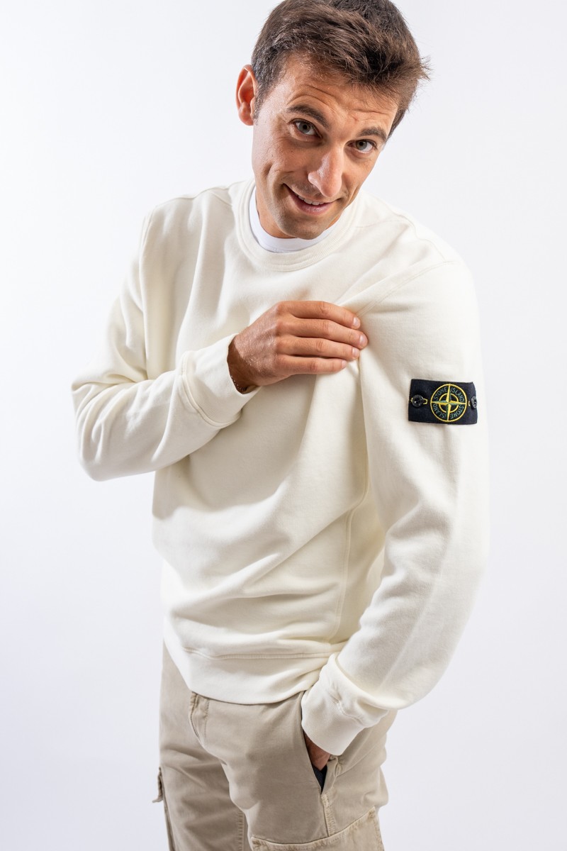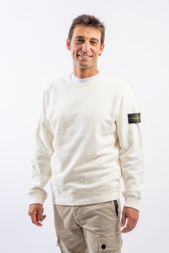 Iconic crewneck sweatshirt in organic cotton reinterpreted with updated fit standards. Pleasant to the touch, it is embellished with brushed inserts. The particular dye makes the colors warm and flattering. Inevitable badge on the left sleeve.