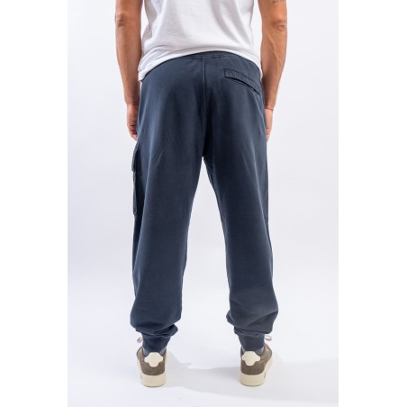 Pocketed trousers in brushed organic cotton. Military-inspired, it features a patch pocket on the left leg with contrasting gusset and snap fly. Garment dyed, it is soft and warm to face the winter in style. Oversized fit.