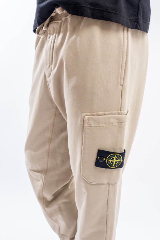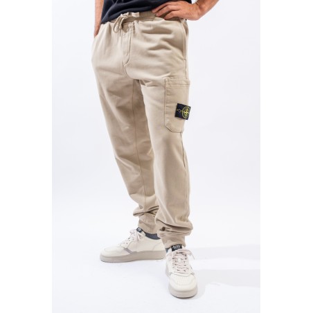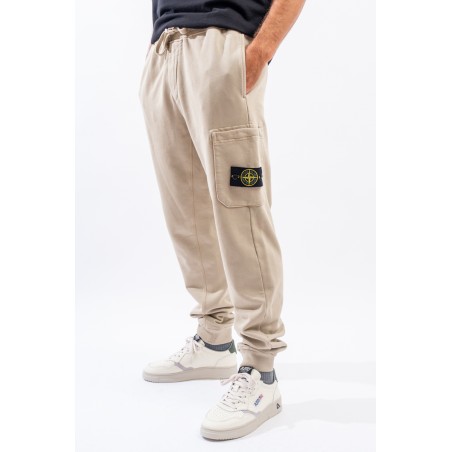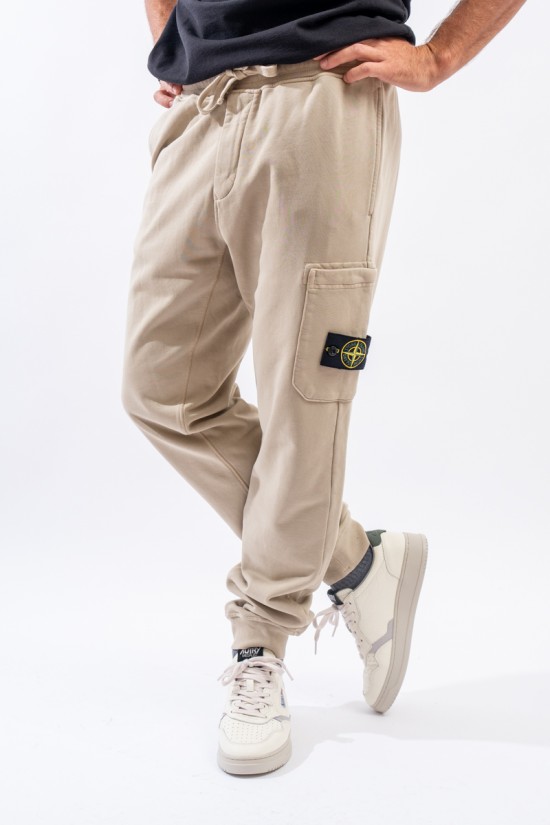 Garment-dyed cotton pocket joggers. Enriched with a welt pocket with the institutional badge applied. Regular fit.