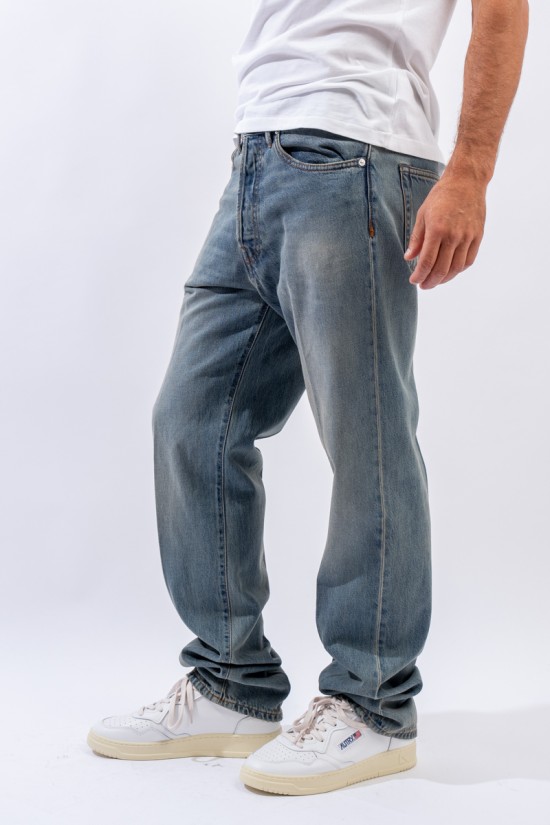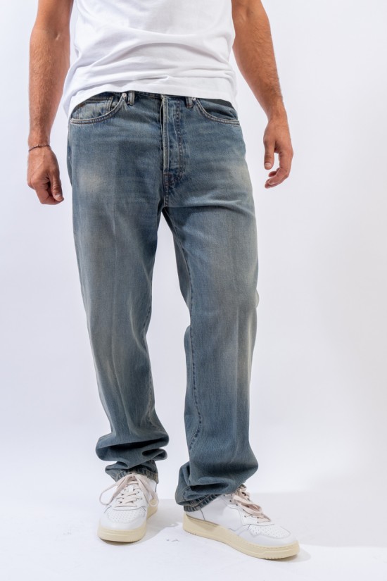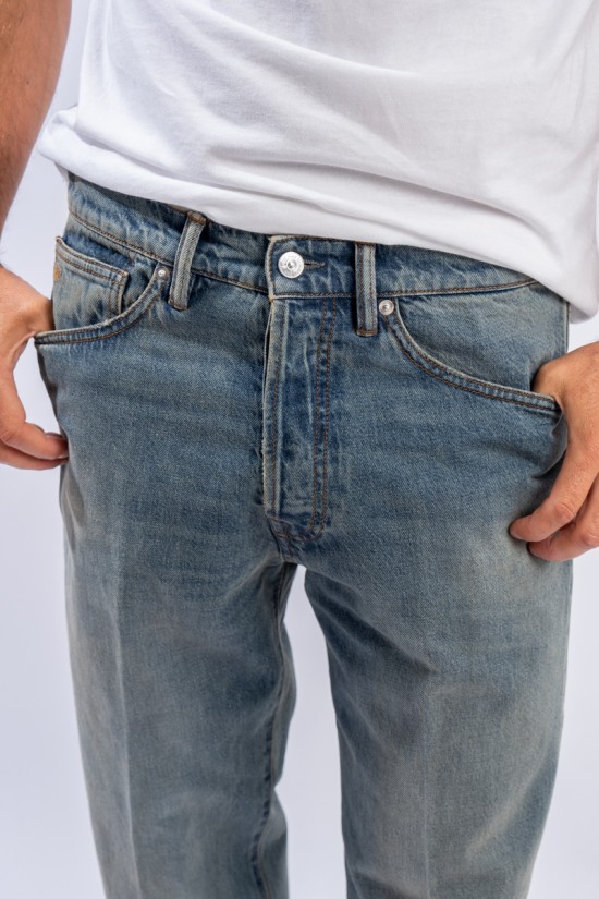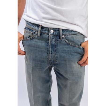 Nine in the Morning is the denim with the perfect fit. This model features a regular waist with a soft leg. Clear wash with used effect. Contrasting stitching perfects the garment. "NINE IN THE MORNING" logo applied above the back pocket. Perfect in all seasons.