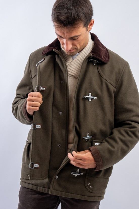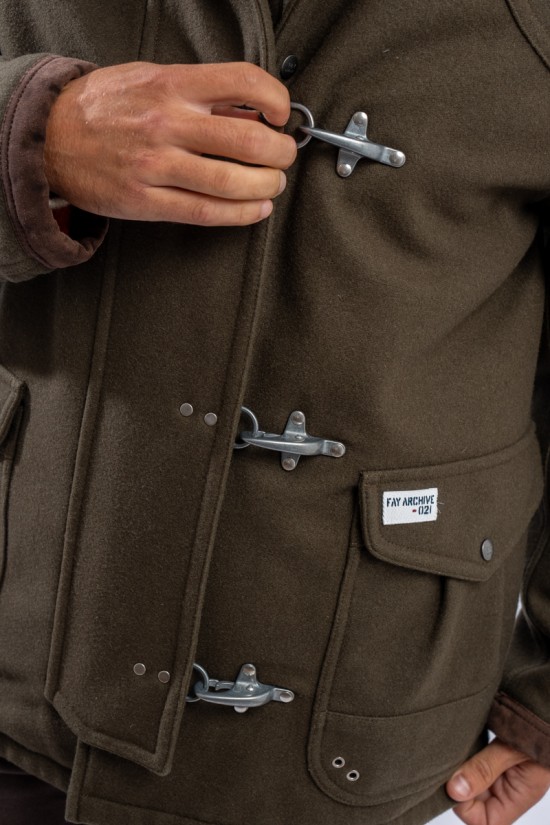 Fay Archive was born from the authentic heritage of the brand and is characterized by the proposal of unique and high-impact garments. The iconic 4-hook metal jacket is inspired by the 80s and has a workwear design. Made of wool blend cloth and padded with wadding with onion quilted lining. The collar is embellished with a 1000-stripe velvet insert that recalls the suede profiles of the pockets and cuffs. Equipped with double flap pockets and hidden snap, one of which is enriched with the FAY Archive logo. Warm and comfortable, this garment is ideal for everyday metropolitan life. It is a Made in Italy product!