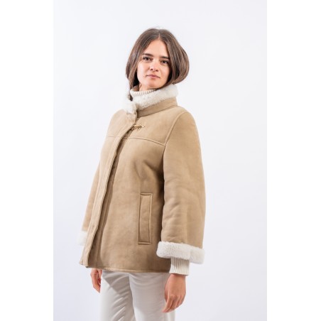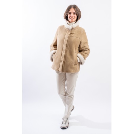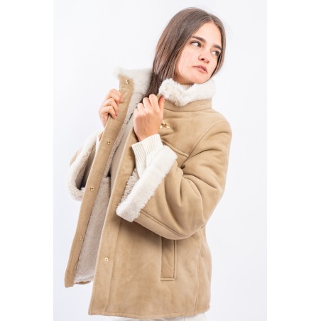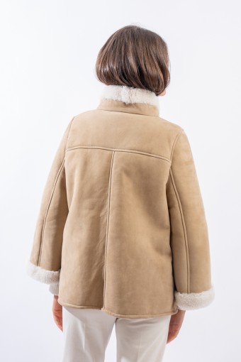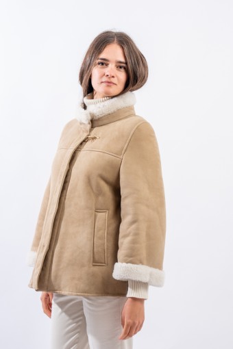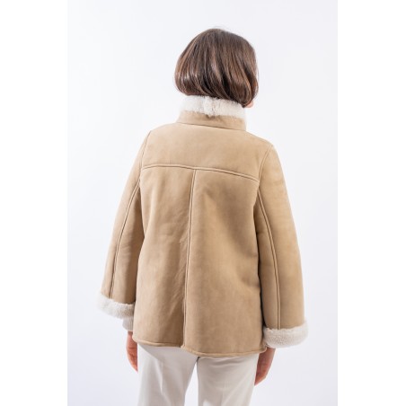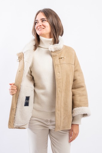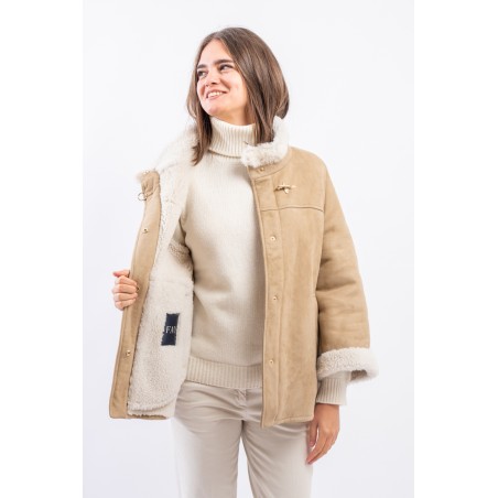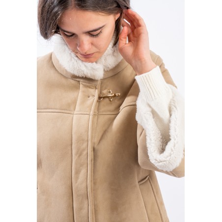 The most exclusive and refined garment of the FAY collection is represented by this fantastic sheepskin cape. The essential and slightly flared line stands out for the enveloping collar and the wide 3/4 sleeves in shearling. The iconic golden hook FAY distinguishes the closure on the neck, which is completed with hidden press studs. Made in Italy.