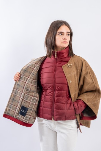 A garment of great effect the 3 in 1 cape proposed by FAY. The outer cap is equipped with a hook and hidden snap buttons and is made with fine wool and cashmere yarns. The second item is a basic, slim fit and hoodless eco down jacket, versatile and practical. The combination of these two garments together gives life to a model of strong impact that strikes for its elegance and contemporaneity.
