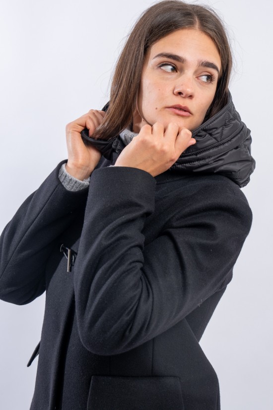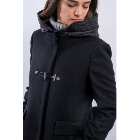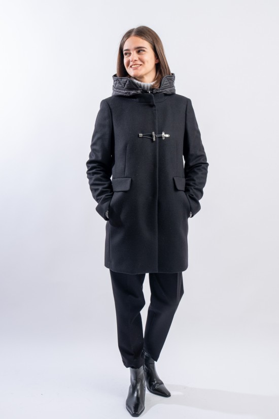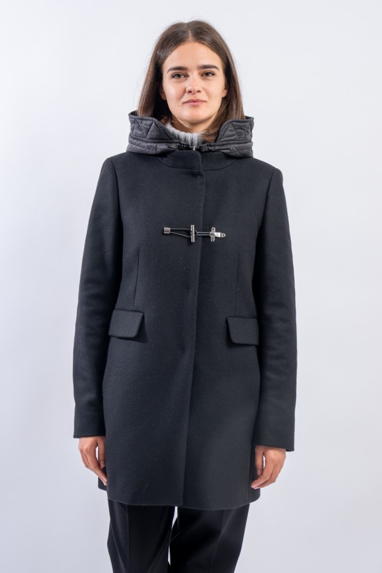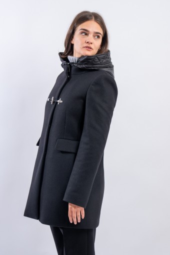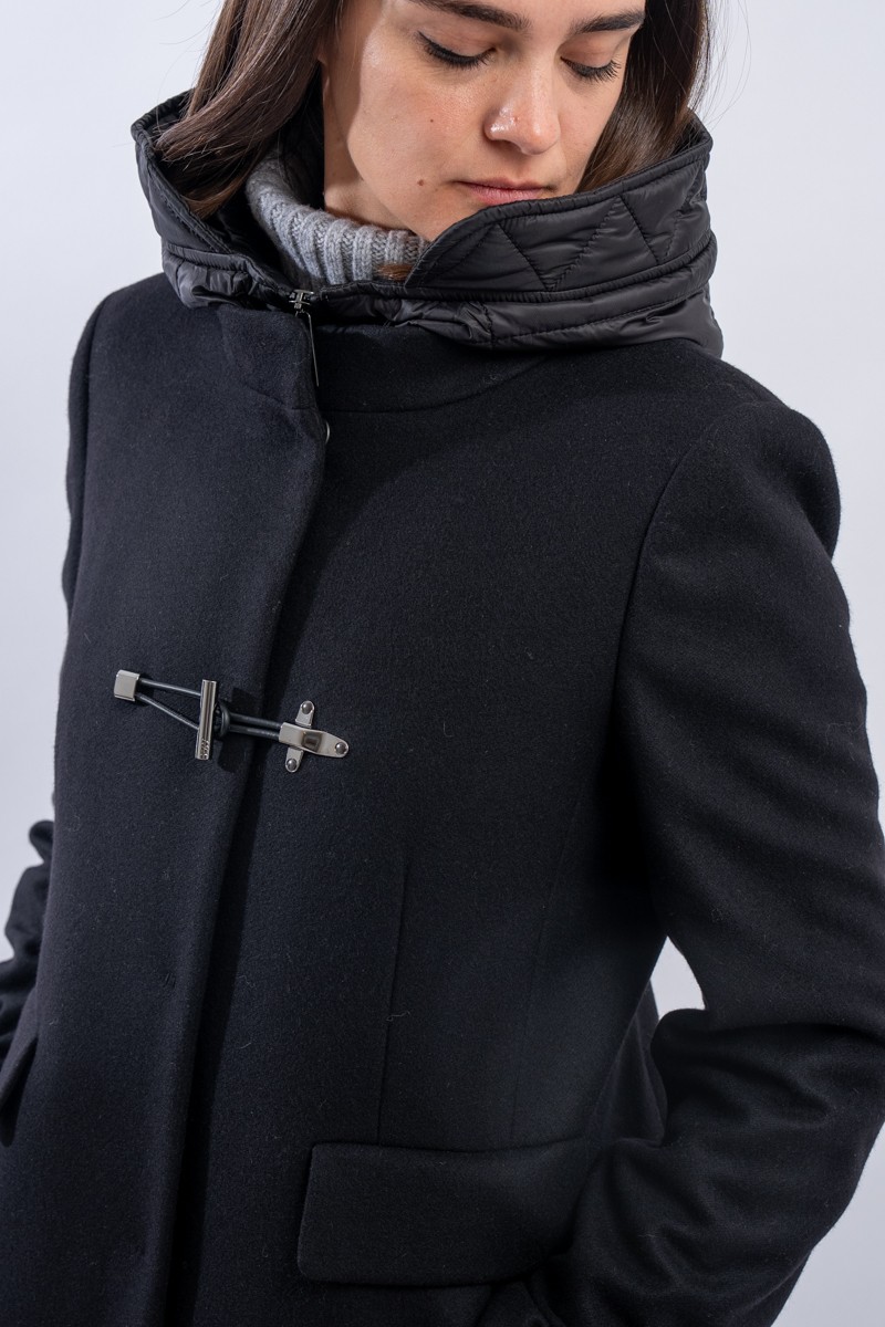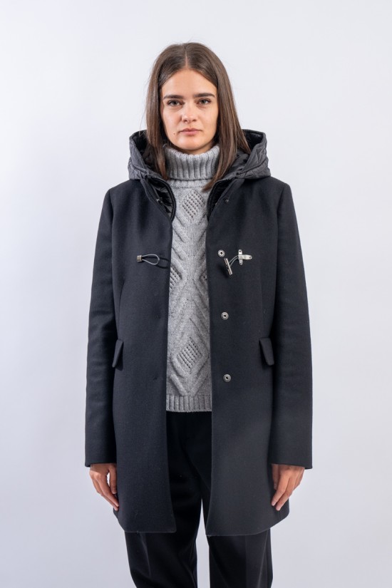 The iconic toggle coat by FAY with double front in nylon is made of wool-blend cloth. The padded insert with hood and zip gives a modern touch to the classic cut of the coat, making it versatile even for a more casual look. Slim fit with horizontal flap pockets and open side pockets. Medium length and internally lined. Made in Italy, it is an indispensable and timeless garment.