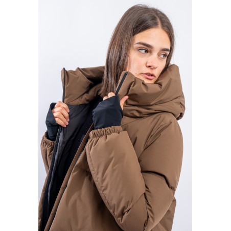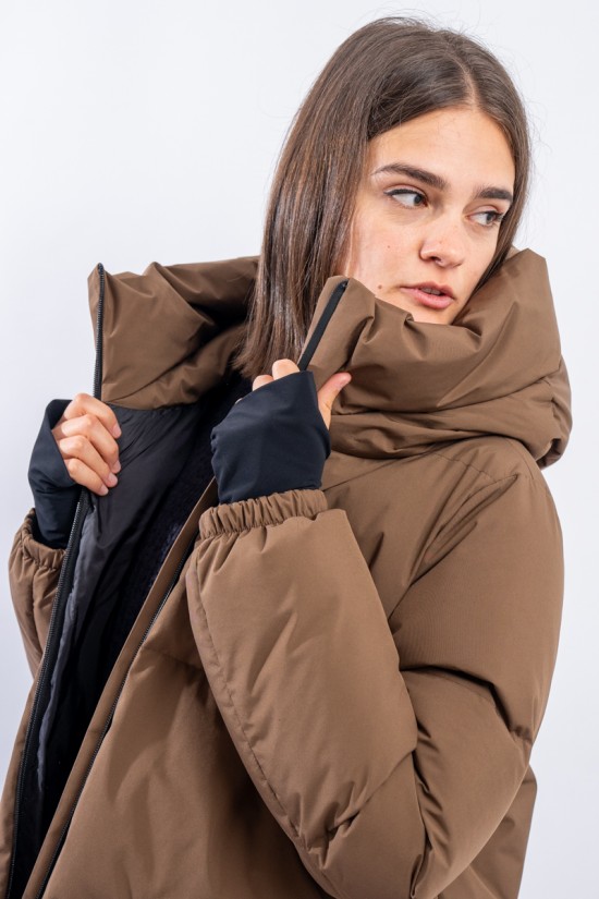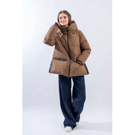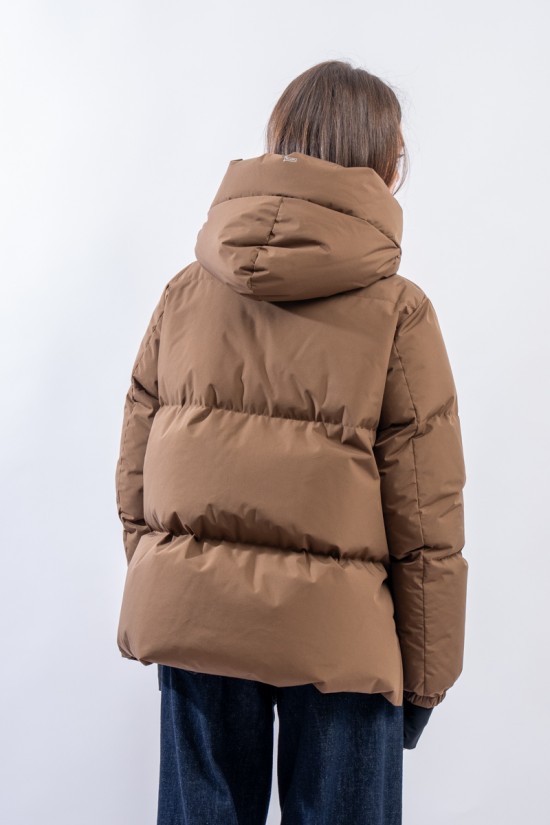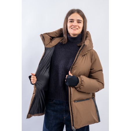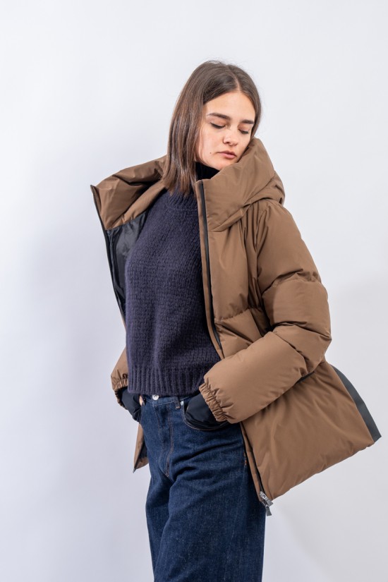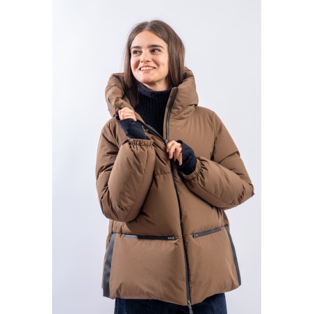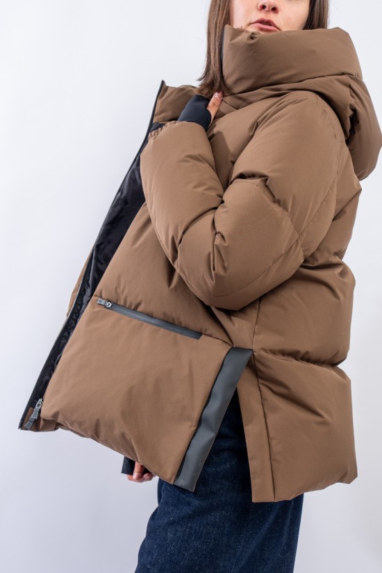 A shaped short down jacket from the Functional Wardrobe line by HERNO that transforms a city-looking model into a high-performance garment. Made of 2-layer technical fabric, it is waterproof, windproof and highly breathable. The goose down padding makes it extremely warm and comfortable, ensuring excellent thermal insulation even for the coldest temperatures. The A-line characteristic of the HERNO garments is emphasized by the side slits covered with rubberized fabric. A model refined in volumes and materials, designed to be durable over time.