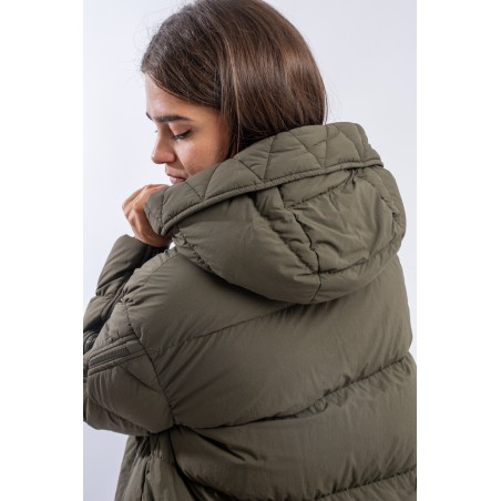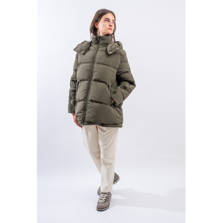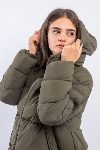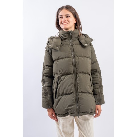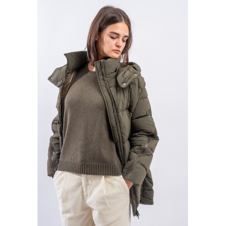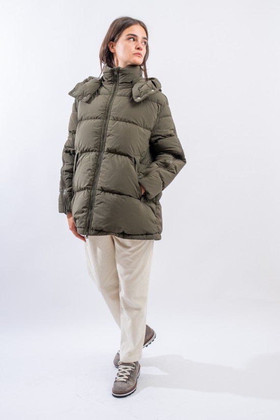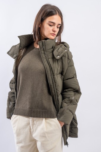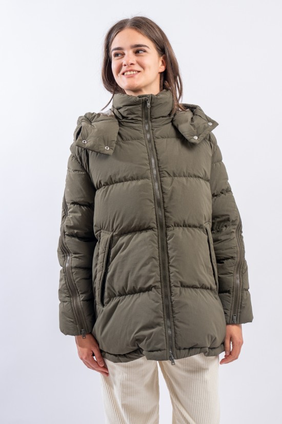 A HERNO down jacket with a sporty look reminiscent of the iconic parka. Made of a water-repellent technical fabric with a cotton hand, it has openable zippers along the sleeves and a detachable hood. This A-line model is slightly rounded at the bottom and is adjustable by means of an internal drawstring. Padded with goose down, it is particularly warm and comfortable, while being very light to wear.