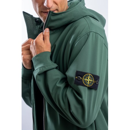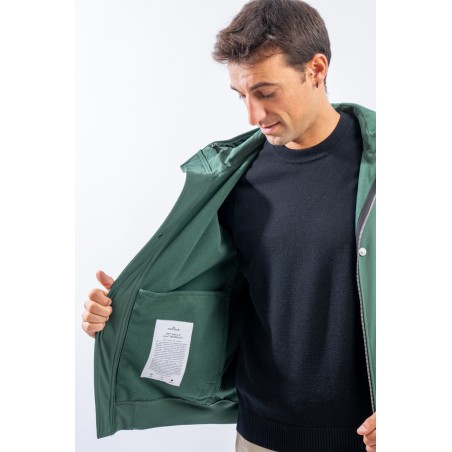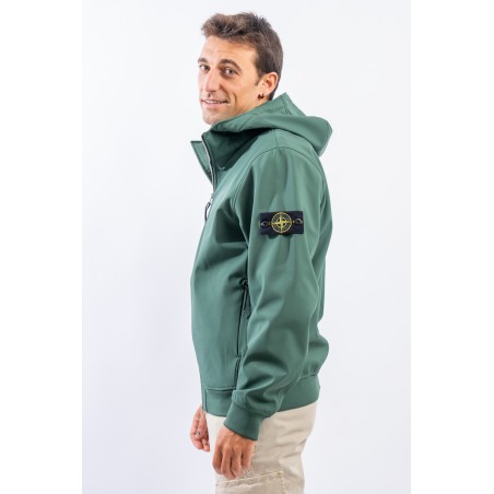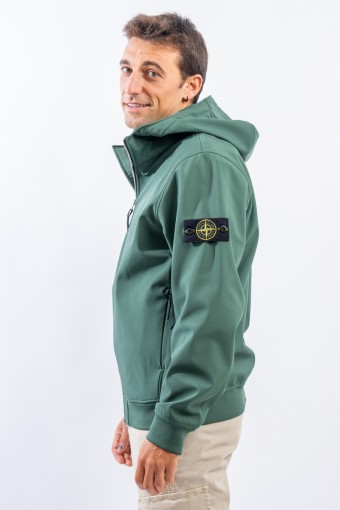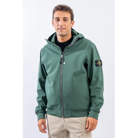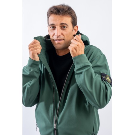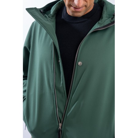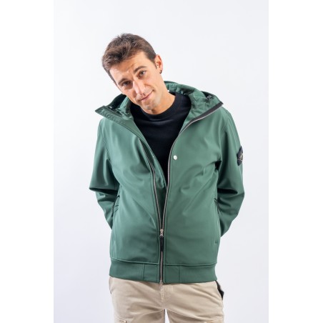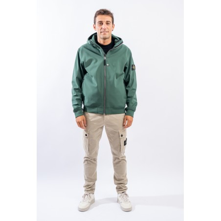 Timeless soft shell jacket with hood. Fabric coupled with membrane, it offers hypermeability standards up to 8000 mm/24h. Lightweight and wind-resistant, practical and useful in everyday metropolitan life. Iconic!