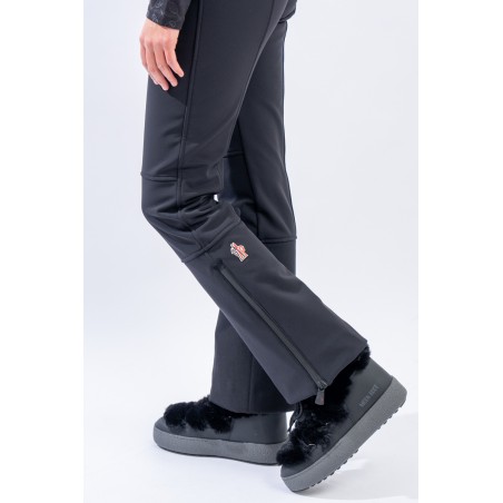 Grenoble MONCLER ski pants made of 4-way stretch technical material that ensures maximum freedom of movement and comfort. Water-repellent, windproof and breathable. It features a high waist, snap button and zip closure and reinforcement on the bottom of the leg closed by a Water Repellent zip. Slim fit. Embellished with the logo applied on the back.