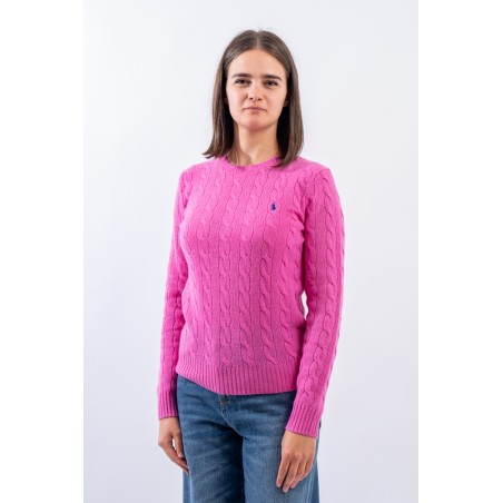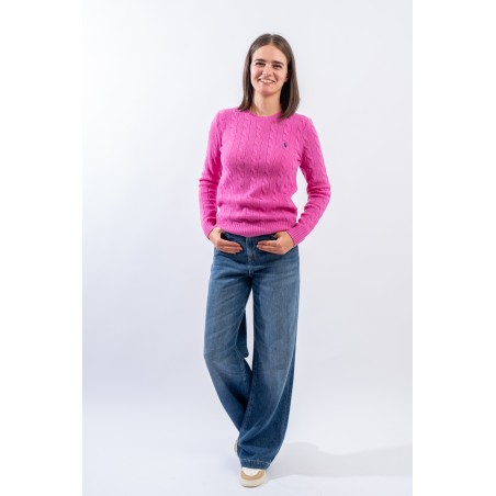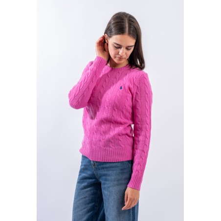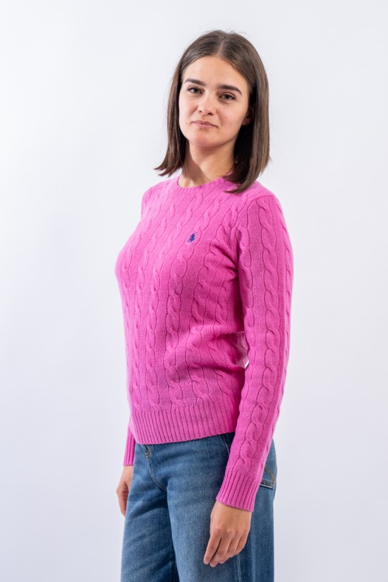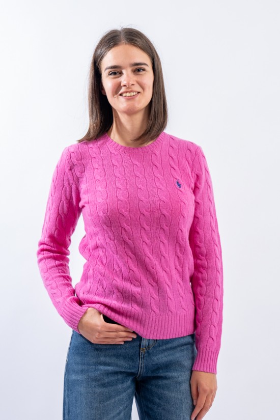 Soft crewneck sweater made of a fine wool and cashmere yarn. Characterized by the braided workmanship with timeless charm. Iconic pony RALPH LAUREN embroidered on the chest. Slim fit. Warm and comfortable, a must-have garment in the cold season.