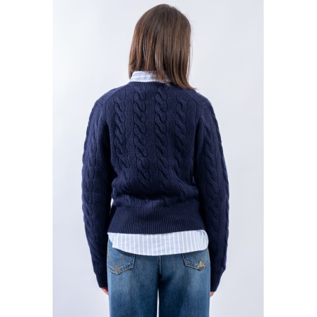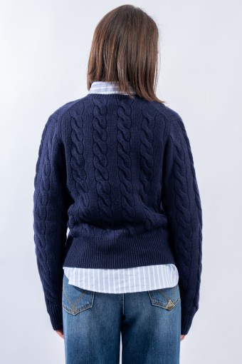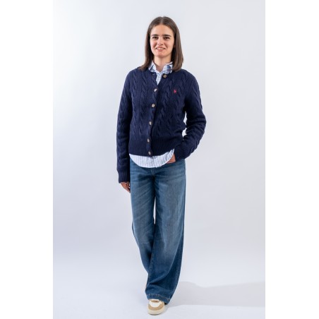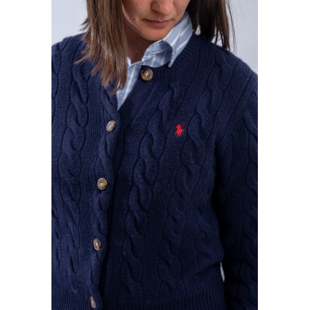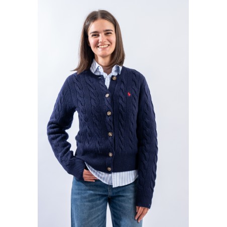 Soft crew-neck cardigan made of a fine wool and cashmere yarn. Characterized by the braided workmanship with timeless charm. Iconic pony RALPH LAUREN embroidered on the chest. Slim fit. Logoed buttons POLO RALPH LAUREN. Warm and comfortable, a must-have garment in the cold season.