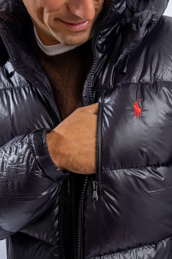 Shiny down jacket by POLO RALPH LAUREN made of water-repellent ripstop. Equipped with a 650 fill power down filling, it guarantees warmth and lightness. The removable drawstring hood and mock neck offer versatility and extra protection. The two-way front zipper, with windbreak and upper tab, prevents annoying chafing. It features long sleeves with adjustable elasticated cuffs, numerous practical pockets and an adjustable drawstring bottom. Embellished with the iconic Pony embroidered on the chest. Perfect for cold winter days!