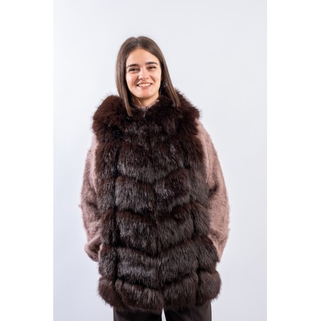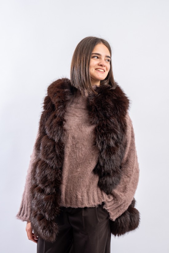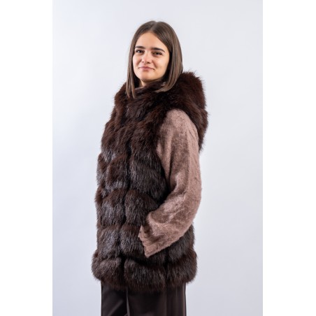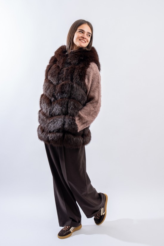 The very soft faux fur vest by REGINA is an ideal garment for those looking for comfort and style. It features a maxi wraparound hood and concealed side pockets. The warm and lightweight material makes it perfect for cool days, while the cropped fit and invisible hooks add a touch of elegance. Perfect to wear with a warm turtleneck sweater underneath.