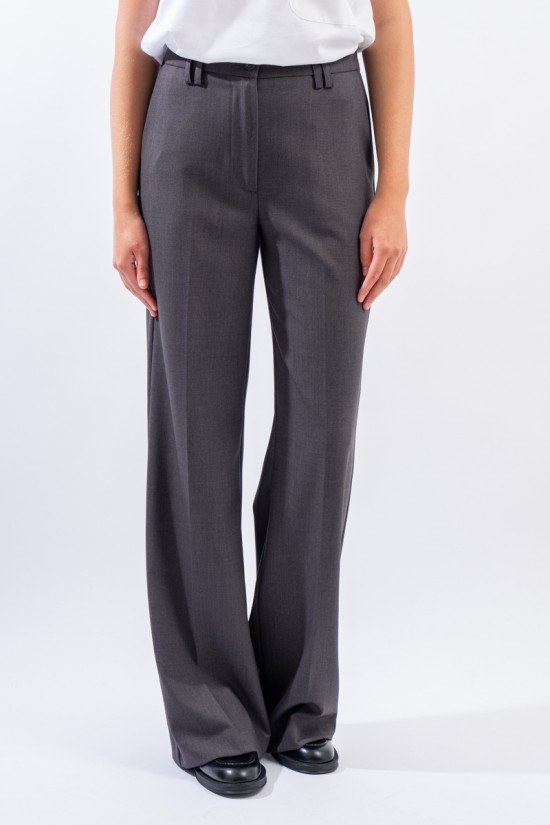 Stretch trousers with a formal palazzo cut. It has an ironed crease, slanted pockets on the front and welt pockets on the back. Zip and button closure, belt loops at the waist. A timeless classic that cannot be missing in every woman's wardrobe!