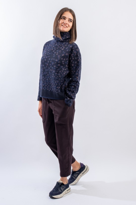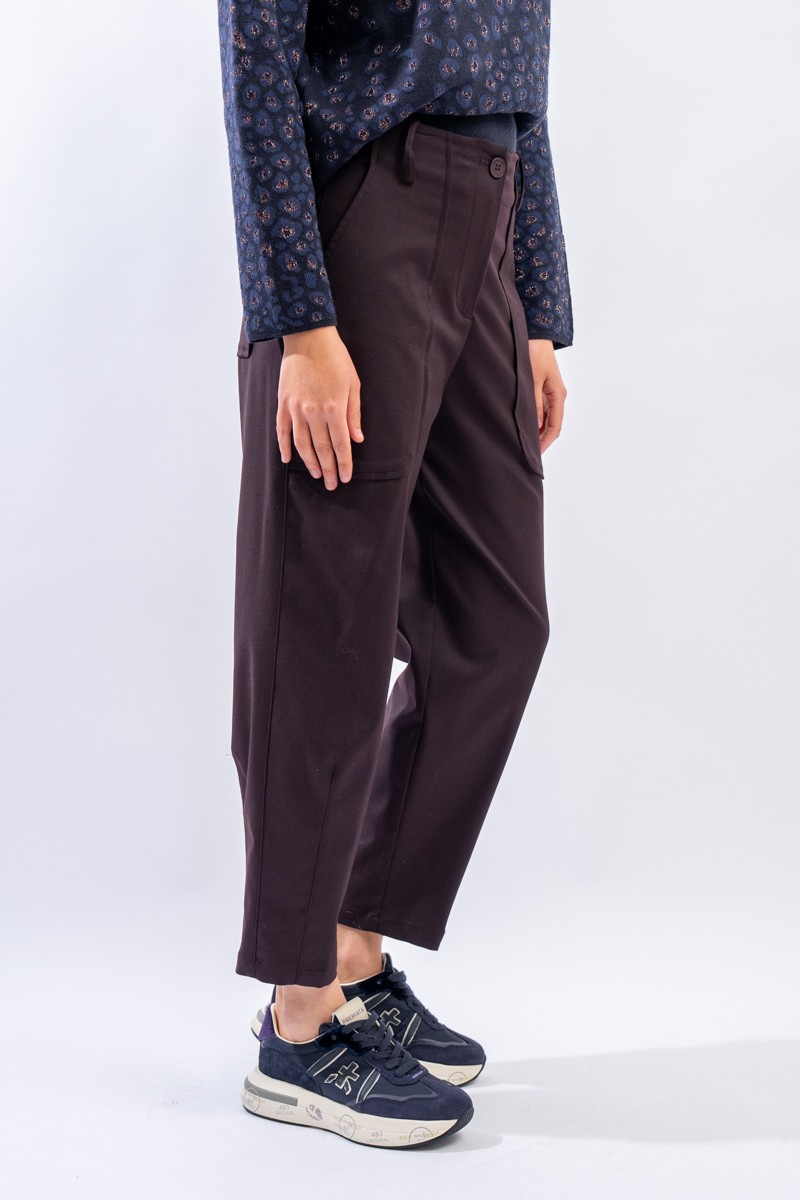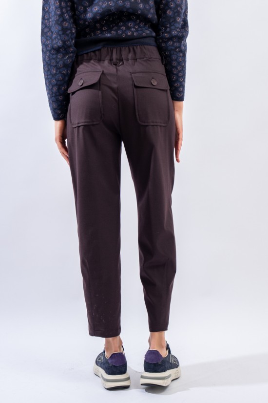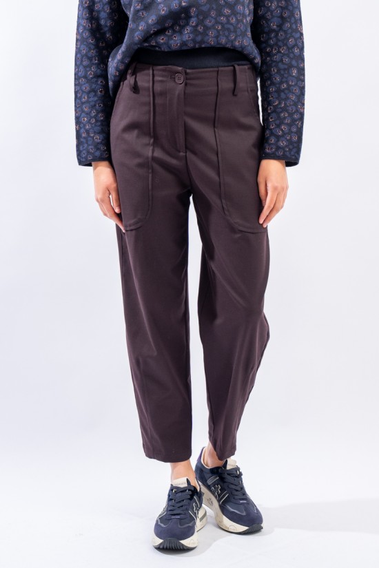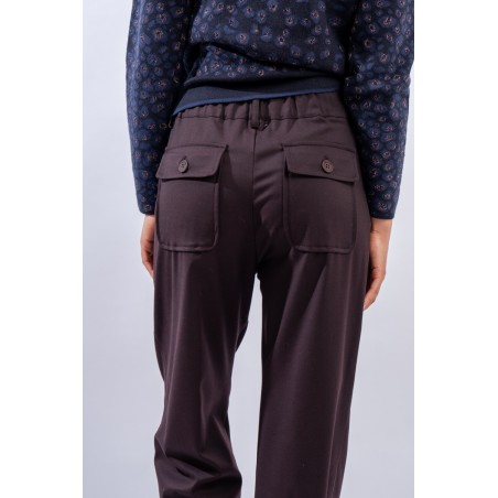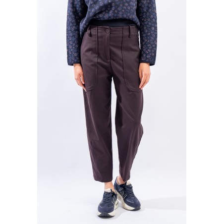 Alessia Santi trousers with a refined and elegant cut. The fit on the leg is wide and then slightly tightens at the bottom. This balloon effect is strongly part of the new trends of the autumn season. It features a high waist with an elastic insert on the back, button and zip closure. It features two large pockets on the back with flap and button. Made in Italy.