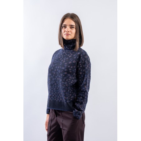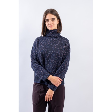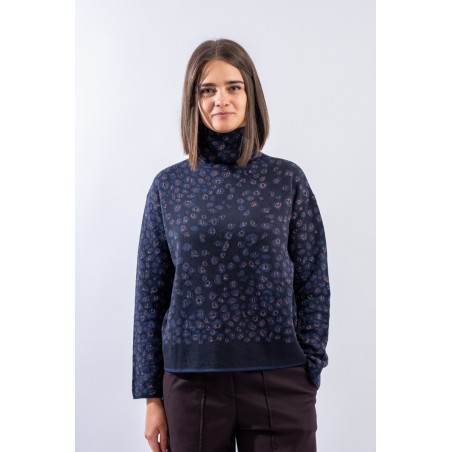 Turtleneck sweater in animal print with a delicate touch of lurex. Boxy model with dropped shoulder. Practical and everyday, made of a pleasant mix of cotton and viscose. Made in Italy.