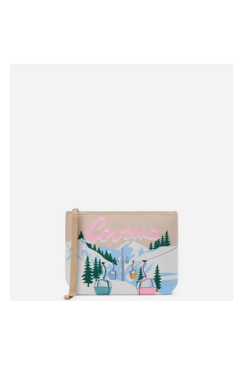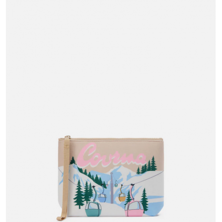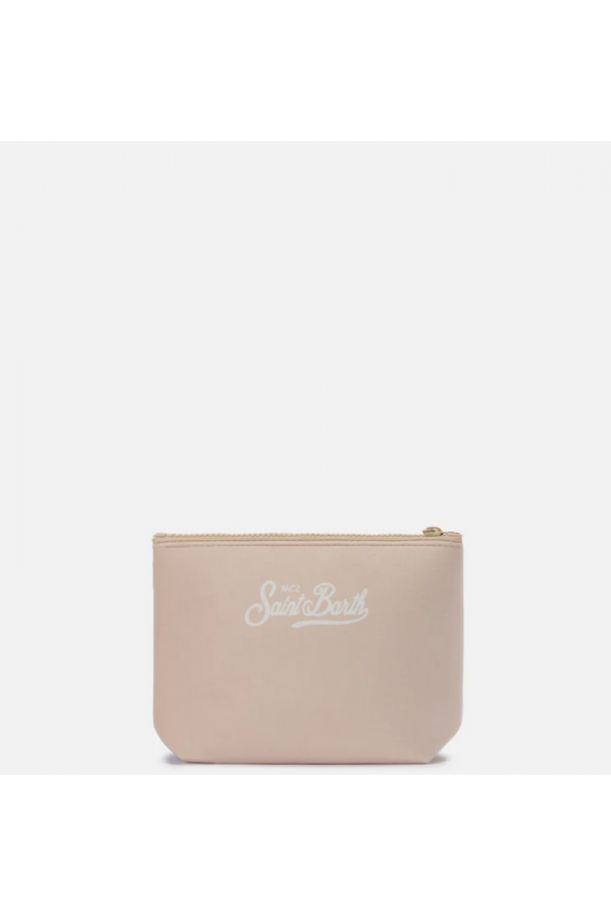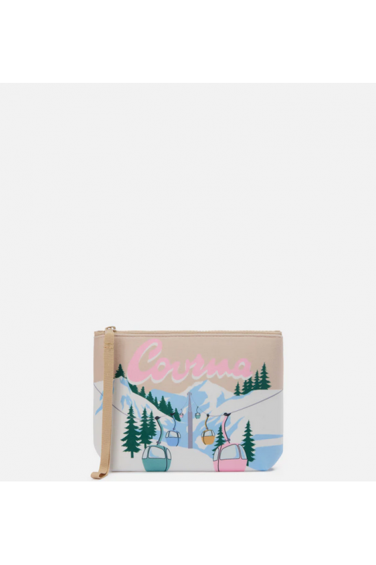 Aline clutch bag made of soft velvet-effect scuba fabric and embellished with a maxi print. Zip closure and grosgrain wrist loop. Ideal for storing the essentials with style and fun by Saint Barth.