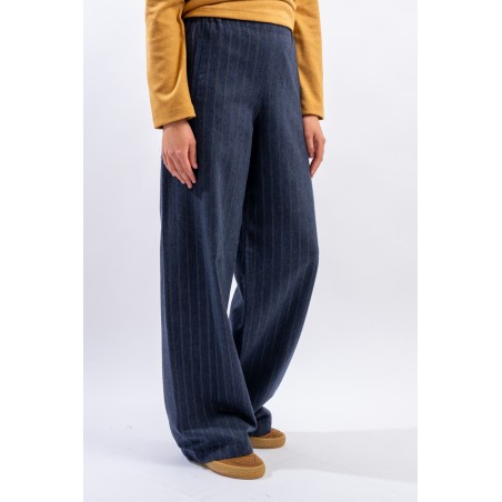 The iconic trousers of the NIU' line are particularly appreciated for their fluid line suitable for dressing every woman. Present straight leg and elasticated waist insert that makes it extremely comfortable. Made from a soft-touch blend of viscose and polyester, it's embellished with a refined pattern of vertical thin stripes. In basic or bright colors, it is a pair of trousers that cannot be missing in the wardrobe of each of us... even in multiple color variants!