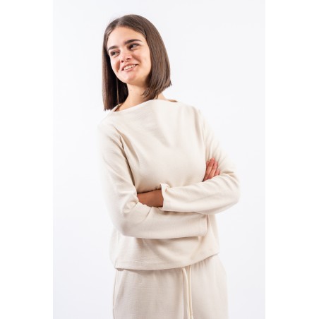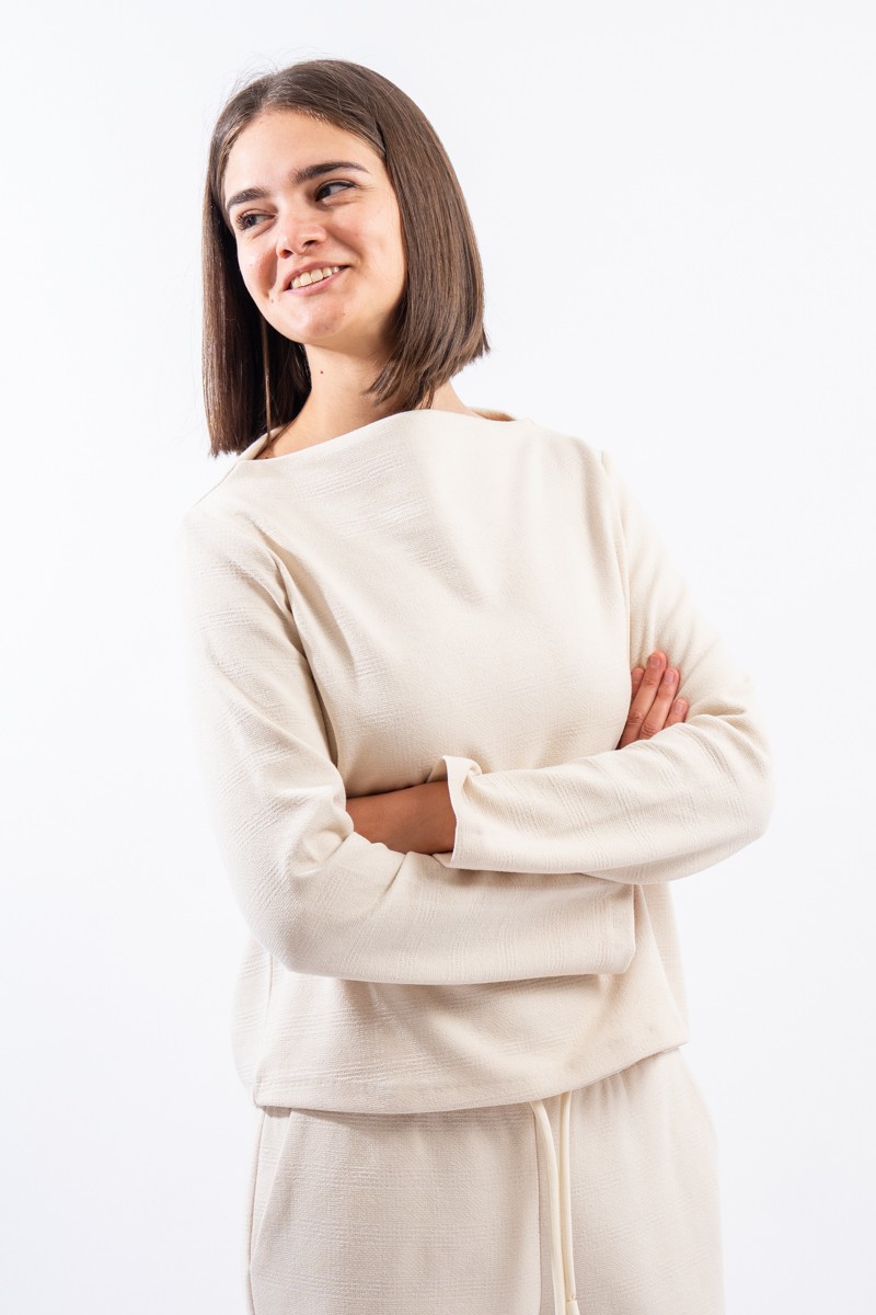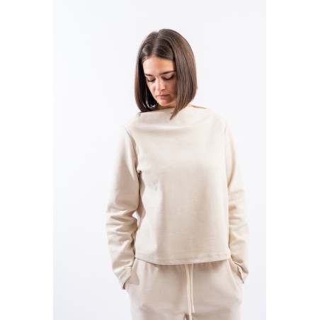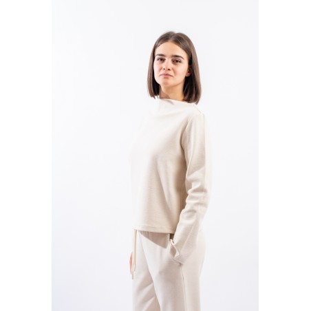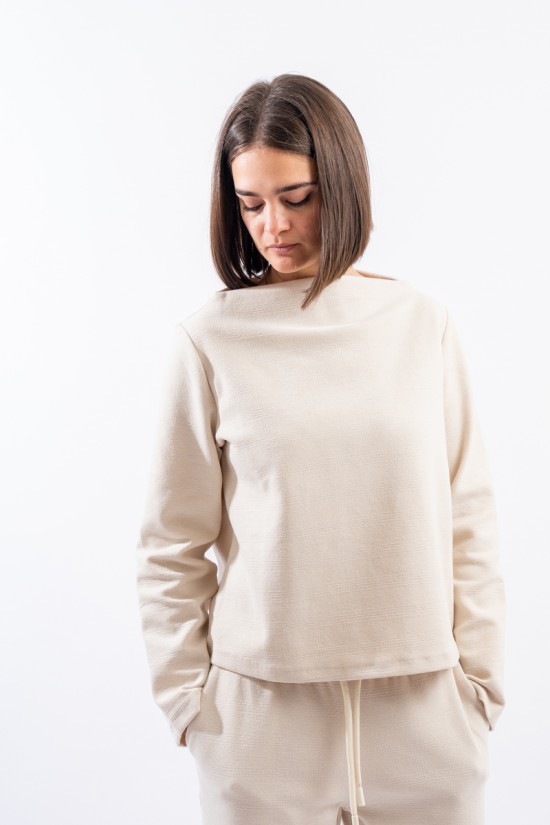 Crater collar sweater with boxy cut. Made of a pleasant mix of cotton and stretch viscose with a tone-on-tone Prince of Wales weave. Slim fit. Perfect to coordinate with his trousers with the same texture.